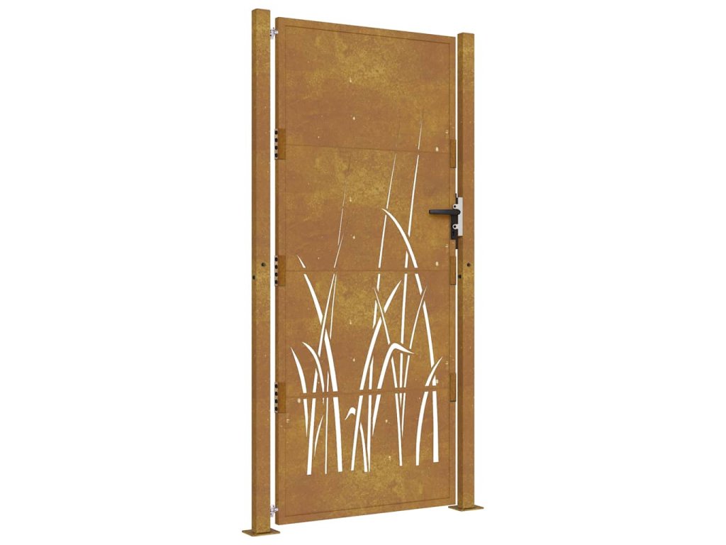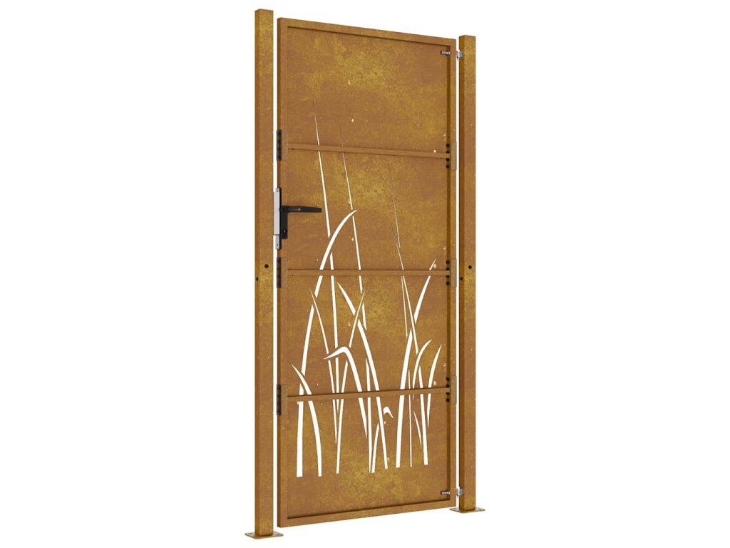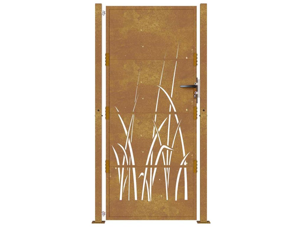 - Odolná konštrukcia: Táto plotová brána je vyrobená z kortenovej ocele. Kortenová oceľ, tiež známa ako oceľ odolná voči poveternostným vplyvom. Je vo svojej podstate antikorózna. Pri prvom vystavení atmosférickým podmienkam sa na nej vytvorí hrdzavá vrstva, ktorá chráni pred koróziou. Preto ju nemusíte natierať. Vďaka tomu ušetríte náklady na údržbu a opravy. Výrazný hnedý odtieň cortenovej ocele zaručene upúta pozornosť. Oceľ je odolná voči poveternostným podmienkam, a je mimoriadne trvácna a obstojí v skúške časom.