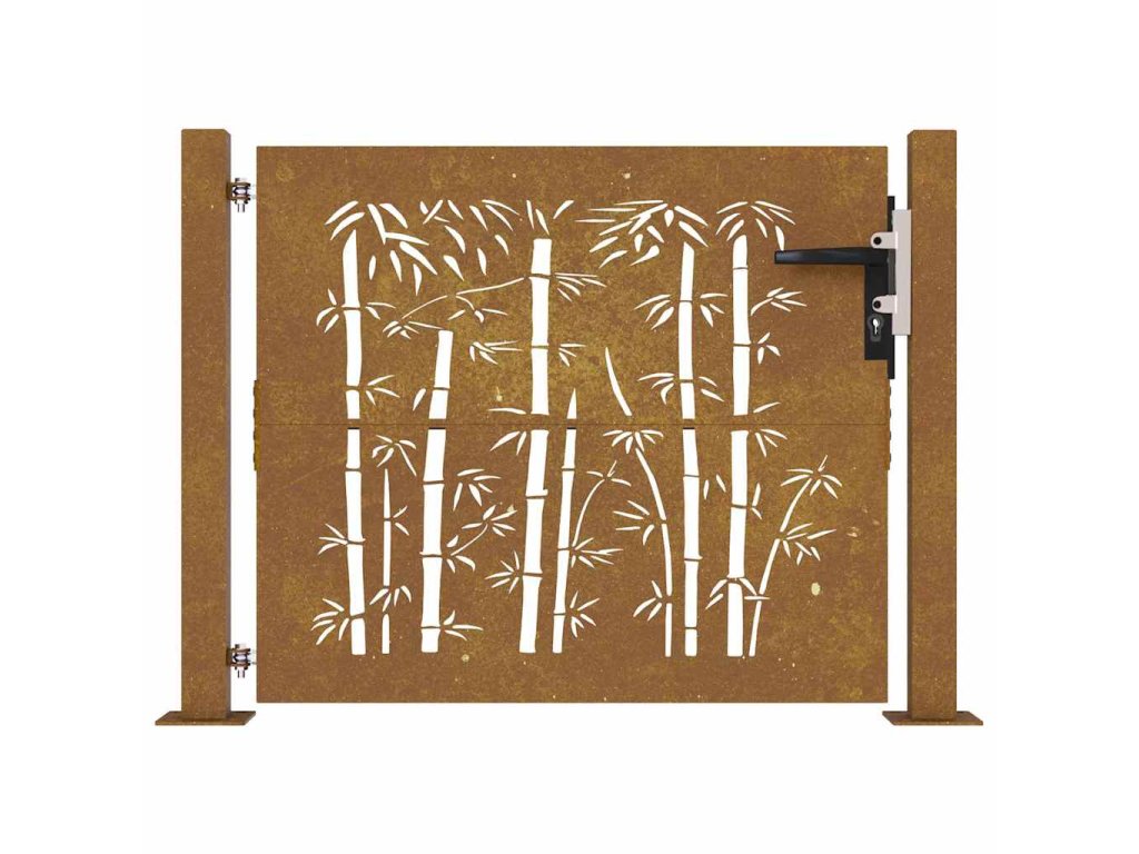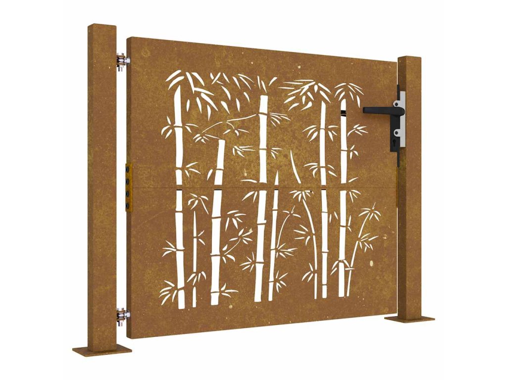 - Odolný materiál: Kovová brána je vyrobená z kortenovej ocele. Kortenová oceľ, tiež známa ako oceľ odolná voči poveternostným vplyvom. Je vo svojej podstate antikorózna. Pri prvom vystavení atmosférickým podmienkam sa na nej vytvorí hrdzavá vrstva, ktorá chráni pred koróziou. Preto ju nemusíte natierať. Vďaka tomu ušetríte náklady na údržbu a opravy. Výrazný hnedý odtieň cortenovej ocele zaručene upúta pozornosť. Poveternostne odolná oceľ je mimoriadne trvácna a obstojí v skúške časom.