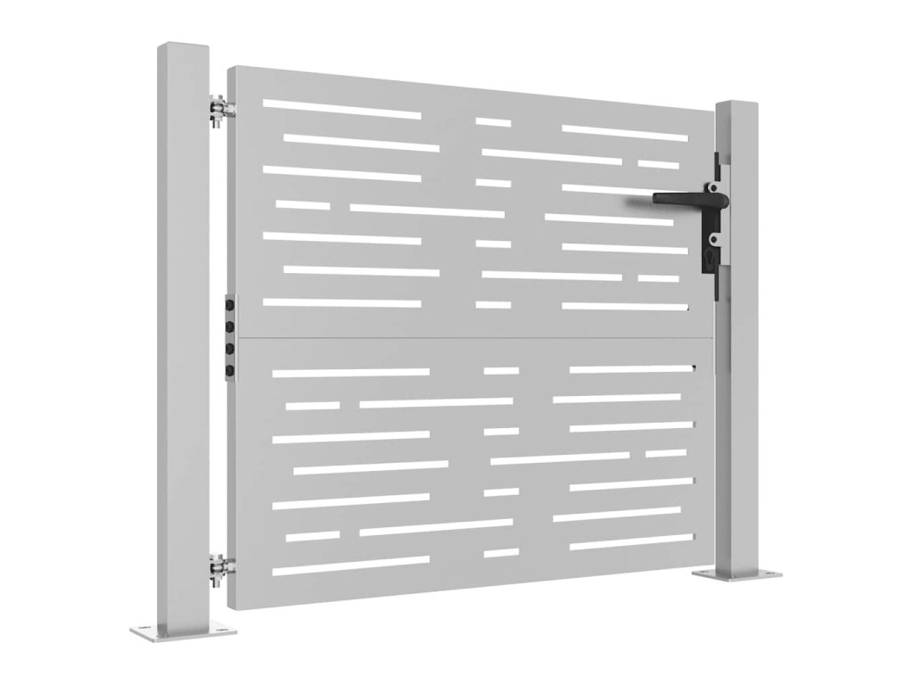 Táto záhradná brána stelesňuje dokonale vyváženú kombináciu pevnosti a elegancie, a predstavuje ideálny vstup k oploteniu záhrady či terasy.