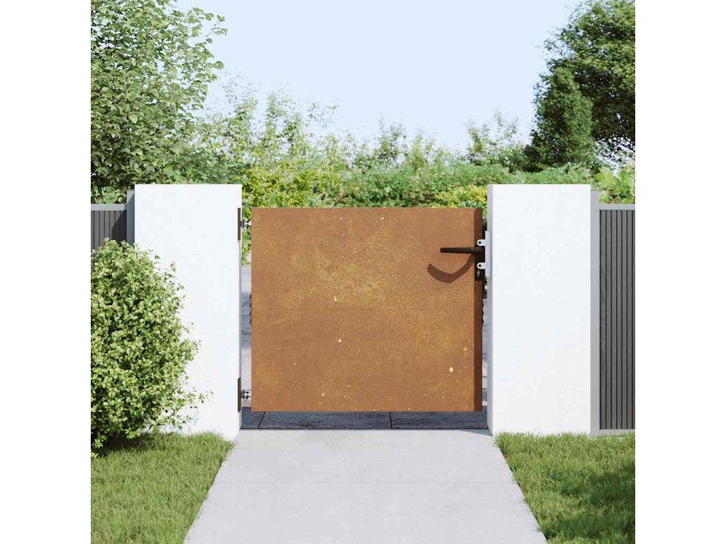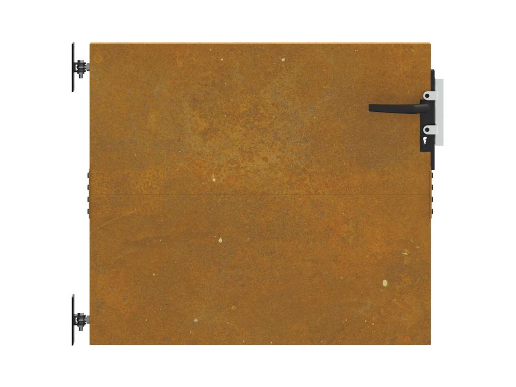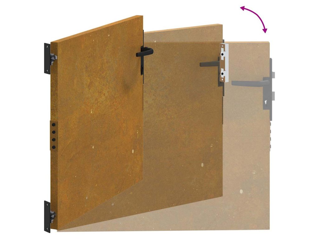 - Odolný materiál: Kovová brána je vyrobená z kortenovej ocele. Kortenová oceľ, tiež známa ako oceľ odolná voči poveternostným vplyvom. Je vo svojej podstate antikorózna. Pri prvom vystavení atmosférickým podmienkam sa na nej vytvorí hrdzavá vrstva, ktorá chráni pred koróziou. Preto ju nemusíte natierať. Vďaka tomu ušetríte náklady na údržbu a opravy. Výrazný hnedý odtieň cortenovej ocele zaručene upúta pozornosť. Poveternostne odolná oceľ je mimoriadne trvácna a obstojí v skúške časom.