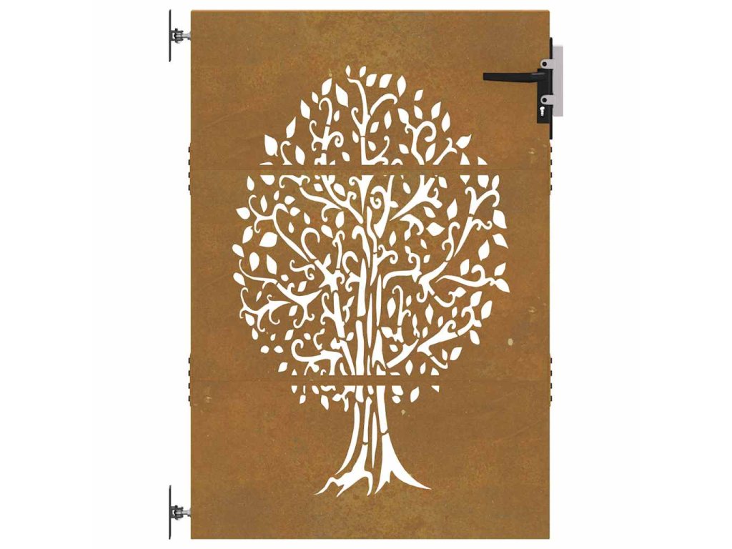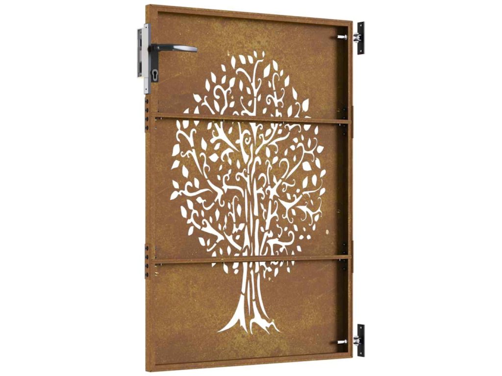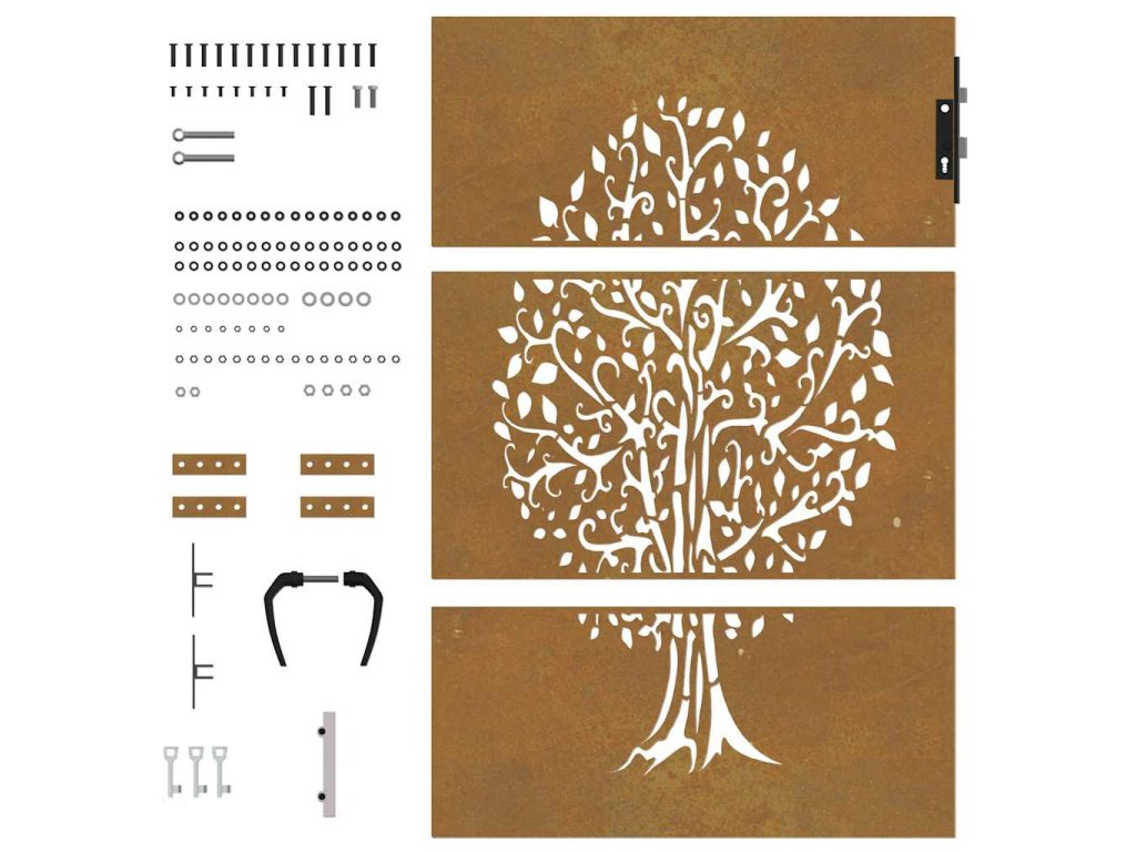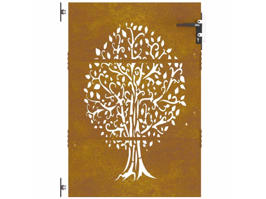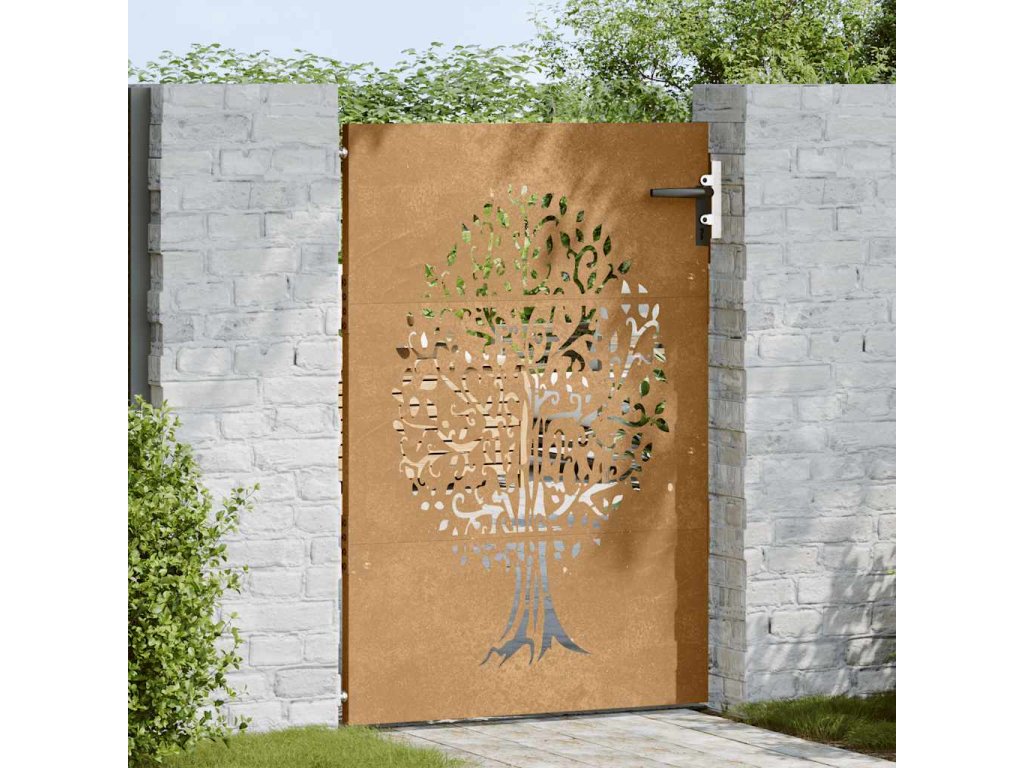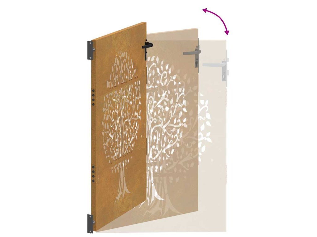 - Odolný materiál: Kovová brána je vyrobená z kortenovej ocele. Kortenová oceľ, tiež známa ako oceľ odolná voči poveternostným vplyvom. Je vo svojej podstate antikorózna. Pri prvom vystavení atmosférickým podmienkam sa na nej vytvorí hrdzavá vrstva, ktorá chráni pred koróziou. Preto ju nemusíte natierať. Vďaka tomu ušetríte náklady na údržbu a opravy. Výrazný hnedý odtieň cortenovej ocele zaručene upúta pozornosť. Poveternostne odolná oceľ je mimoriadne trvácna a obstojí v skúške časom.
