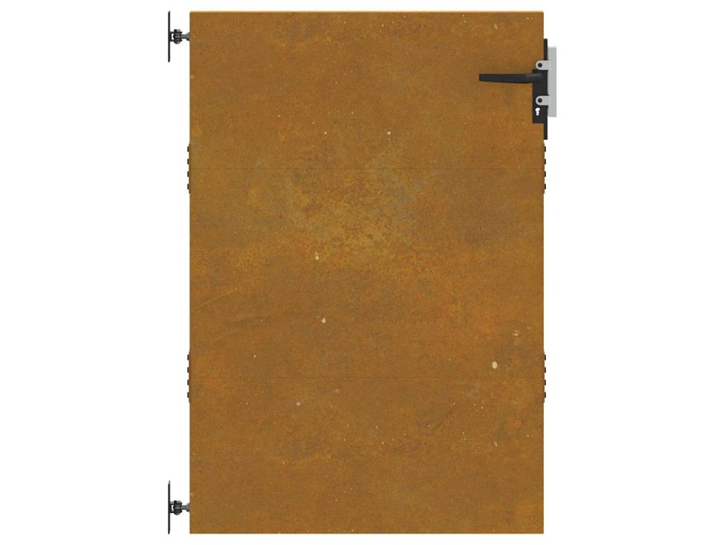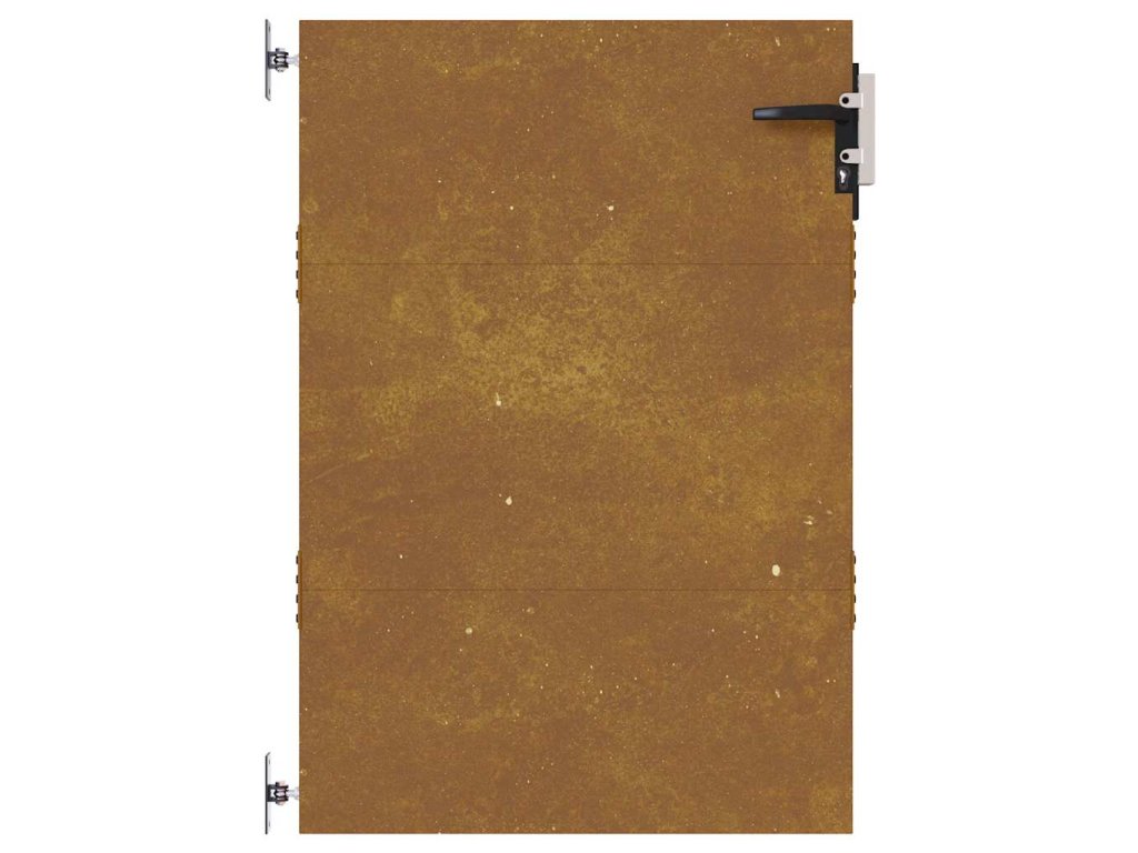 - Odolný materiál: Kovová brána je vyrobená z kortenovej ocele. Kortenová oceľ, tiež známa ako oceľ odolná voči poveternostným vplyvom. Je vo svojej podstate antikorózna. Pri prvom vystavení atmosférickým podmienkam sa na nej vytvorí hrdzavá vrstva, ktorá chráni pred koróziou. Preto ju nemusíte natierať. Vďaka tomu ušetríte náklady na údržbu a opravy. Výrazný hnedý odtieň cortenovej ocele zaručene upúta pozornosť. Poveternostne odolná oceľ je mimoriadne trvácna a obstojí v skúške časom.