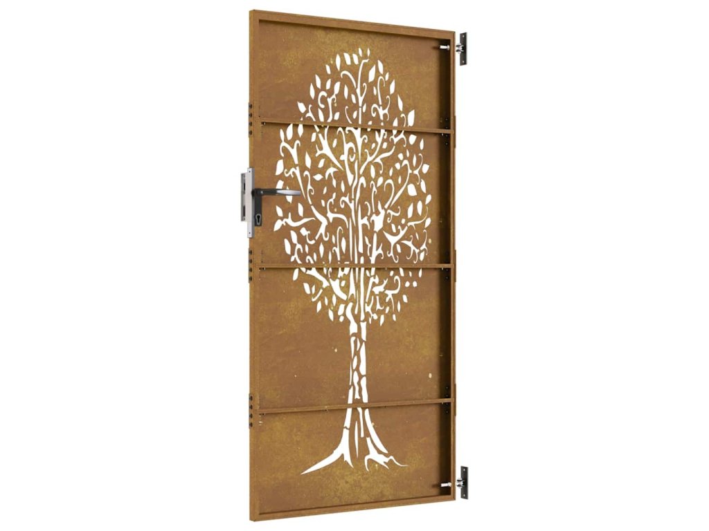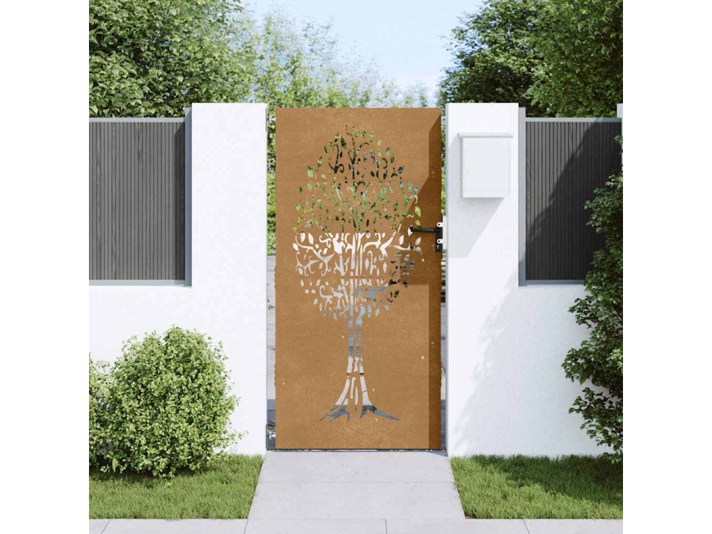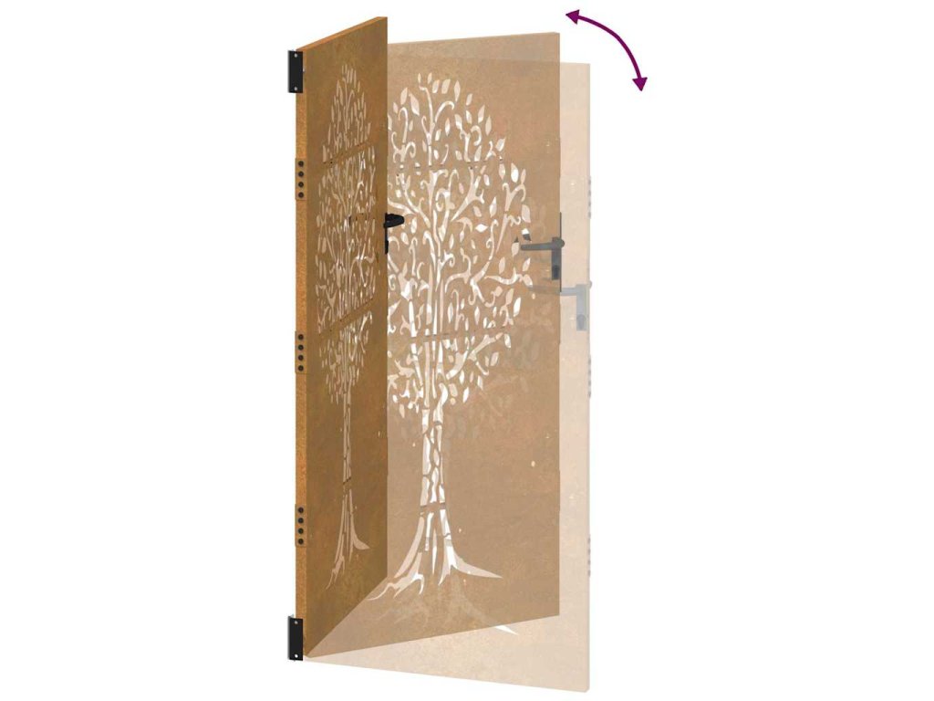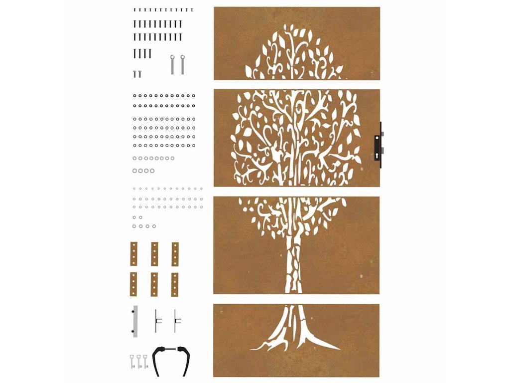 - Odolný materiál: Kovová brána je vyrobená z kortenovej ocele. Kortenová oceľ, tiež známa ako oceľ odolná voči poveternostným vplyvom. Je vo svojej podstate antikorózna. Pri prvom vystavení atmosférickým podmienkam sa na nej vytvorí hrdzavá vrstva, ktorá chráni pred koróziou. Preto ju nemusíte natierať. Vďaka tomu ušetríte náklady na údržbu a opravy. Výrazný hnedý odtieň cortenovej ocele zaručene upúta pozornosť. Poveternostne odolná oceľ je mimoriadne trvácna a obstojí v skúške časom.