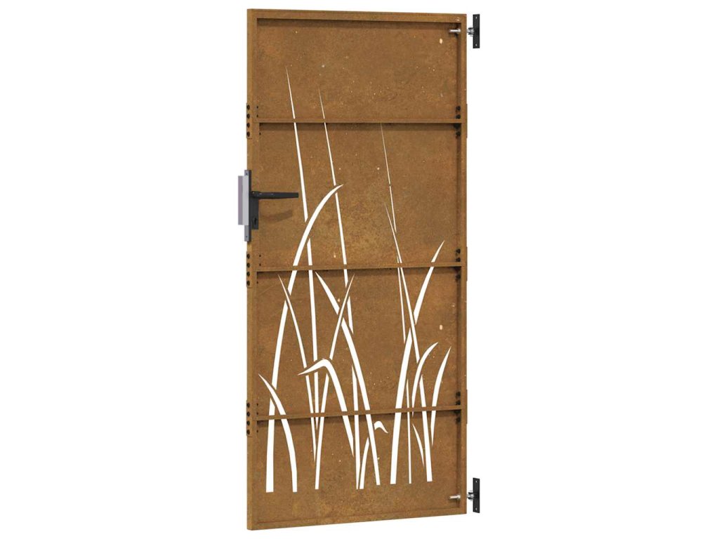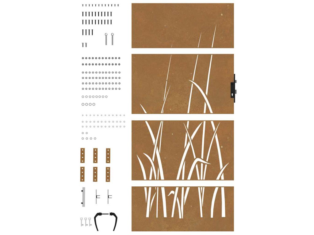 - Odolný materiál: Kovová brána je vyrobená z kortenovej ocele. Kortenová oceľ, tiež známa ako oceľ odolná voči poveternostným vplyvom. Je vo svojej podstate antikorózna. Pri prvom vystavení atmosférickým podmienkam sa na nej vytvorí hrdzavá vrstva, ktorá chráni pred koróziou. Preto ju nemusíte natierať. Vďaka tomu ušetríte náklady na údržbu a opravy. Výrazný hnedý odtieň cortenovej ocele zaručene upúta pozornosť. Poveternostne odolná oceľ je mimoriadne trvácna a obstojí v skúške časom.