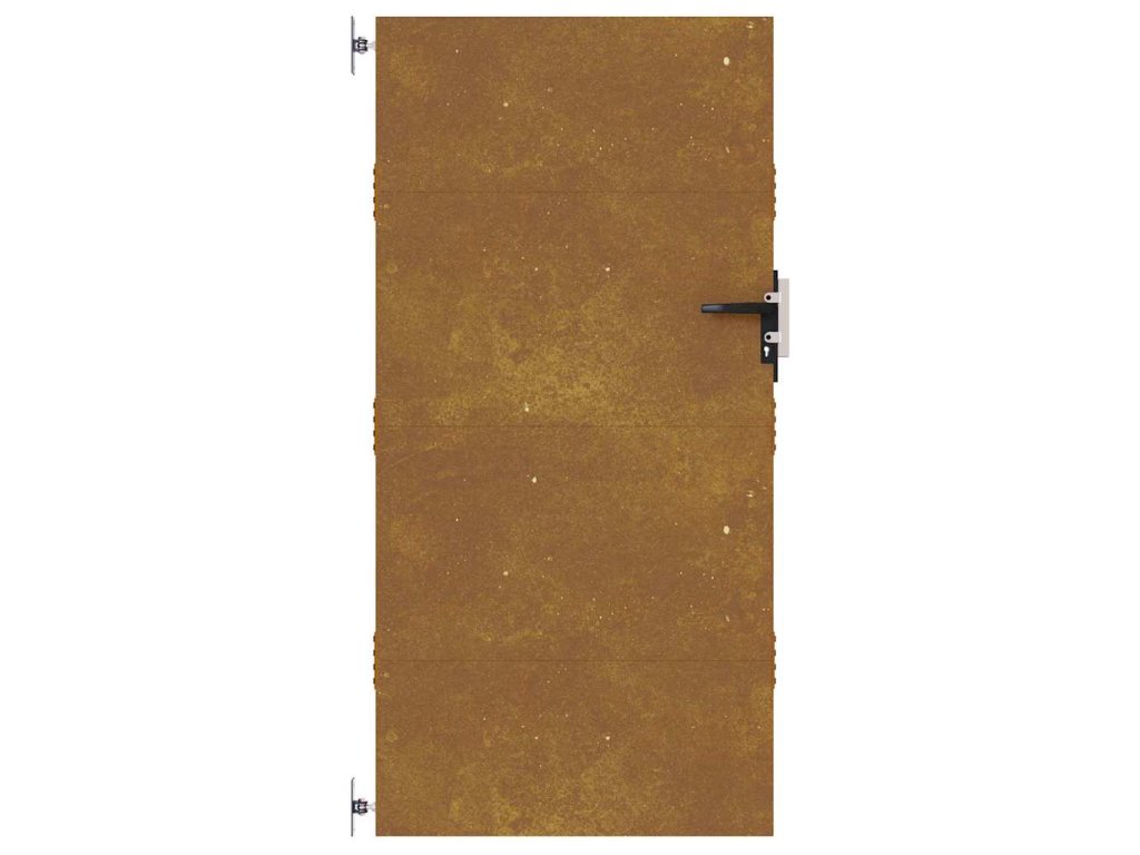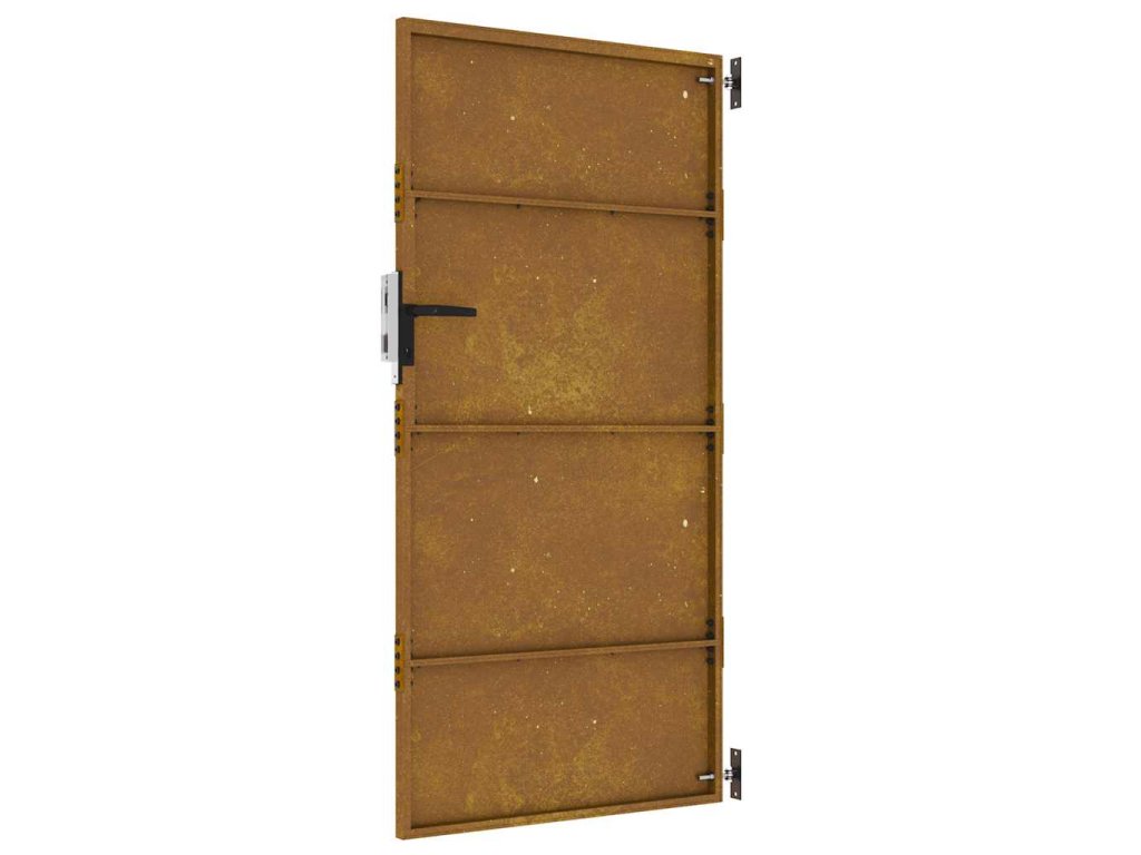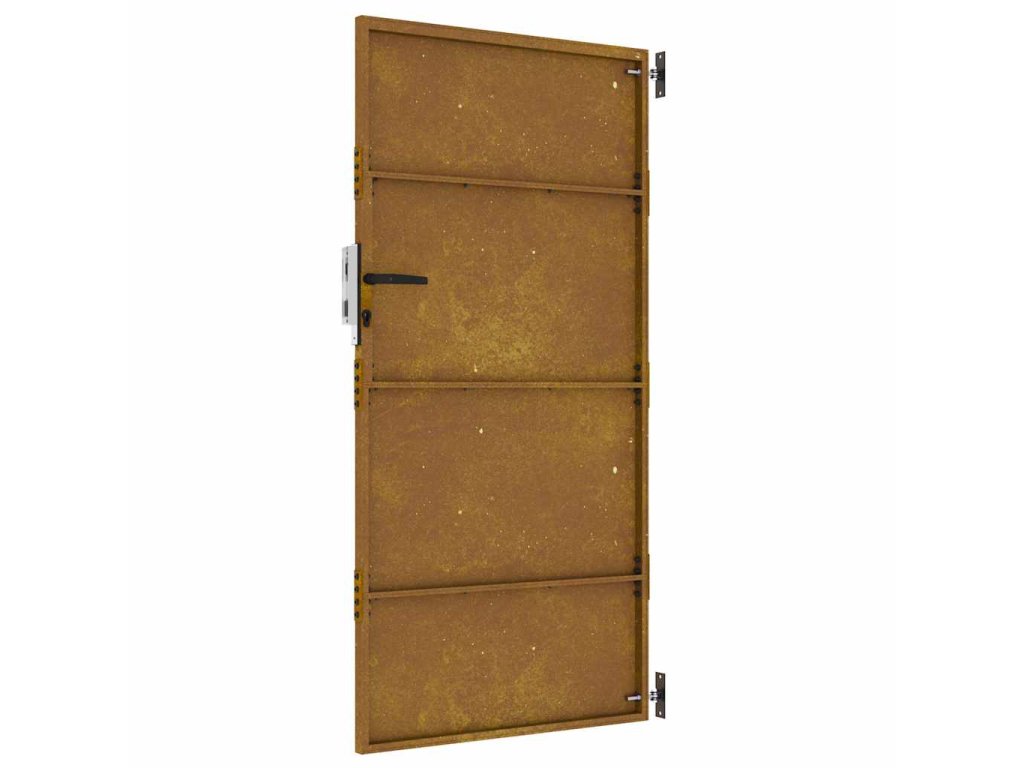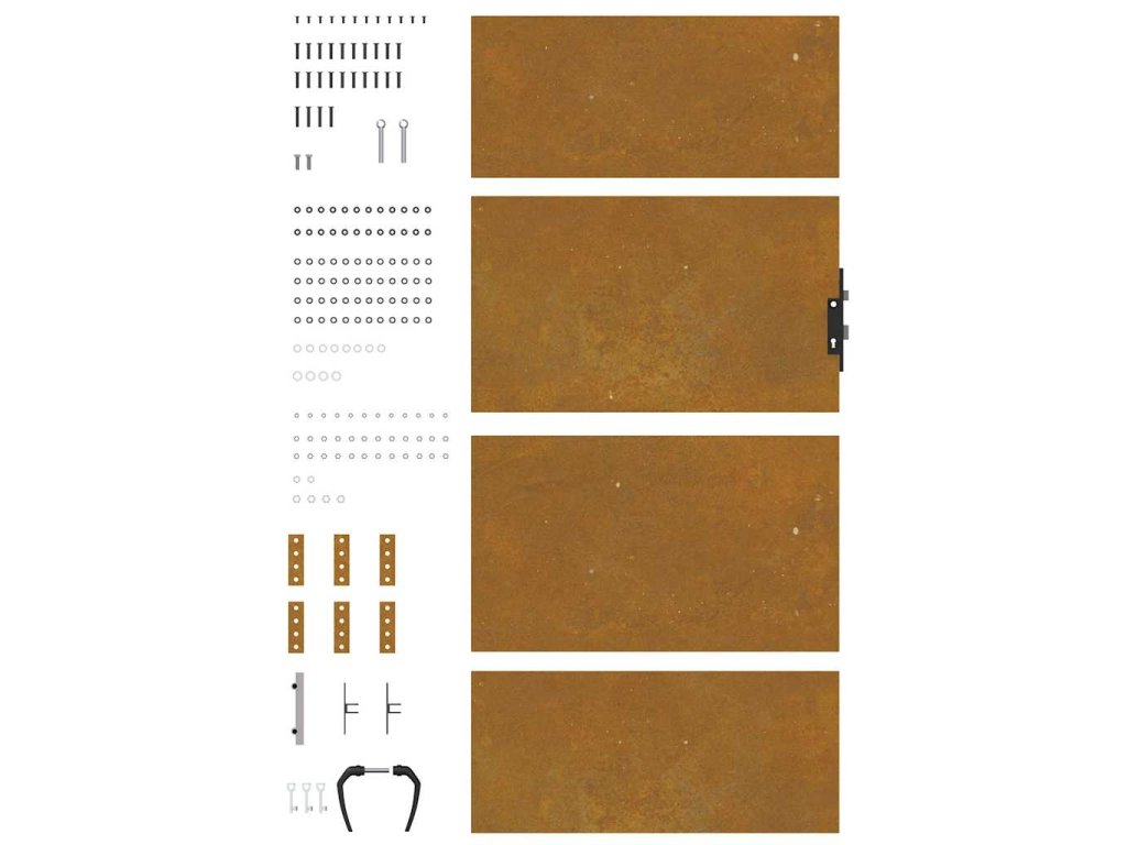 - Odolný materiál: Kovová brána je vyrobená z kortenovej ocele. Kortenová oceľ, tiež známa ako oceľ odolná voči poveternostným vplyvom. Je vo svojej podstate antikorózna. Pri prvom vystavení atmosférickým podmienkam sa na nej vytvorí hrdzavá vrstva, ktorá chráni pred koróziou. Preto ju nemusíte natierať. Vďaka tomu ušetríte náklady na údržbu a opravy. Výrazný hnedý odtieň cortenovej ocele zaručene upúta pozornosť. Poveternostne odolná oceľ je mimoriadne trvácna a obstojí v skúške časom.