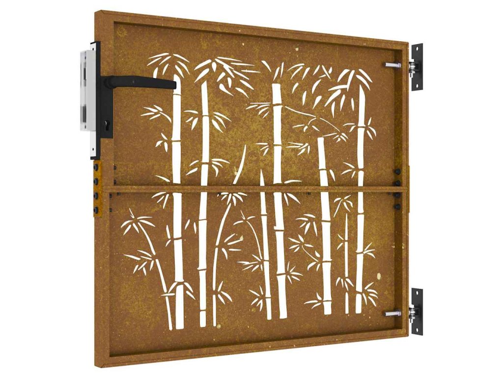 - Odolný materiál: Kovová brána je vyrobená z kortenovej ocele. Kortenová oceľ, tiež známa ako oceľ odolná voči poveternostným vplyvom. Je vo svojej podstate antikorózna. Pri prvom vystavení atmosférickým podmienkam sa na nej vytvorí hrdzavá vrstva, ktorá chráni pred koróziou. Preto ju nemusíte natierať. Vďaka tomu ušetríte náklady na údržbu a opravy. Výrazný hnedý odtieň cortenovej ocele zaručene upúta pozornosť. Poveternostne odolná oceľ je mimoriadne trvácna a obstojí v skúške časom.