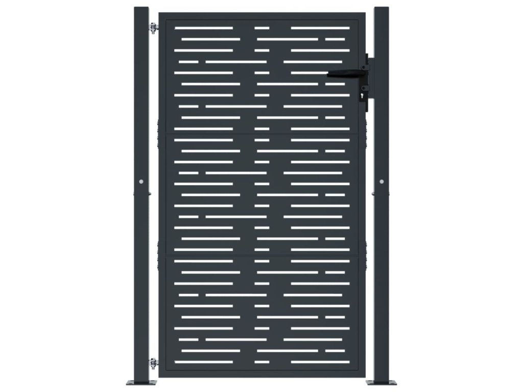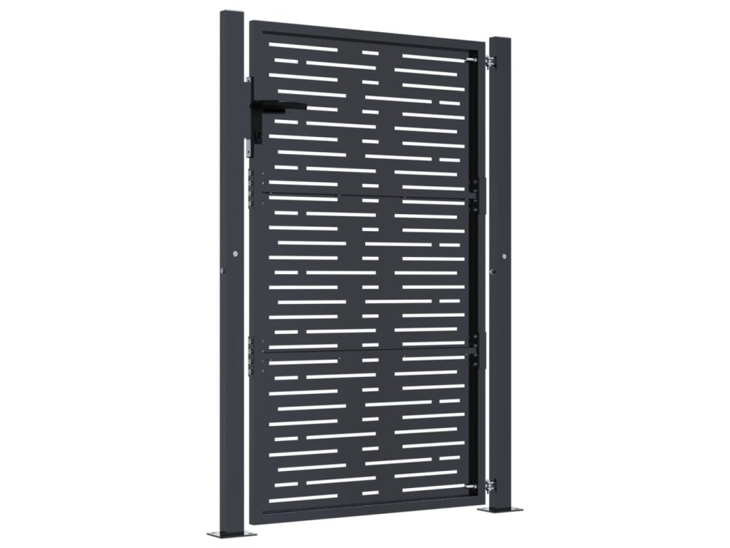 Táto záhradná brána stelesňuje dokonale vyváženú kombináciu pevnosti a elegancie, a predstavuje ideálny vstup k oploteniu záhrady či terasy.