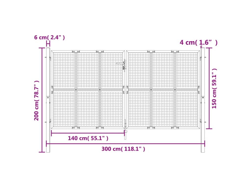 - Celkové rozmery brány: 300 x 200 cm (Š x V)