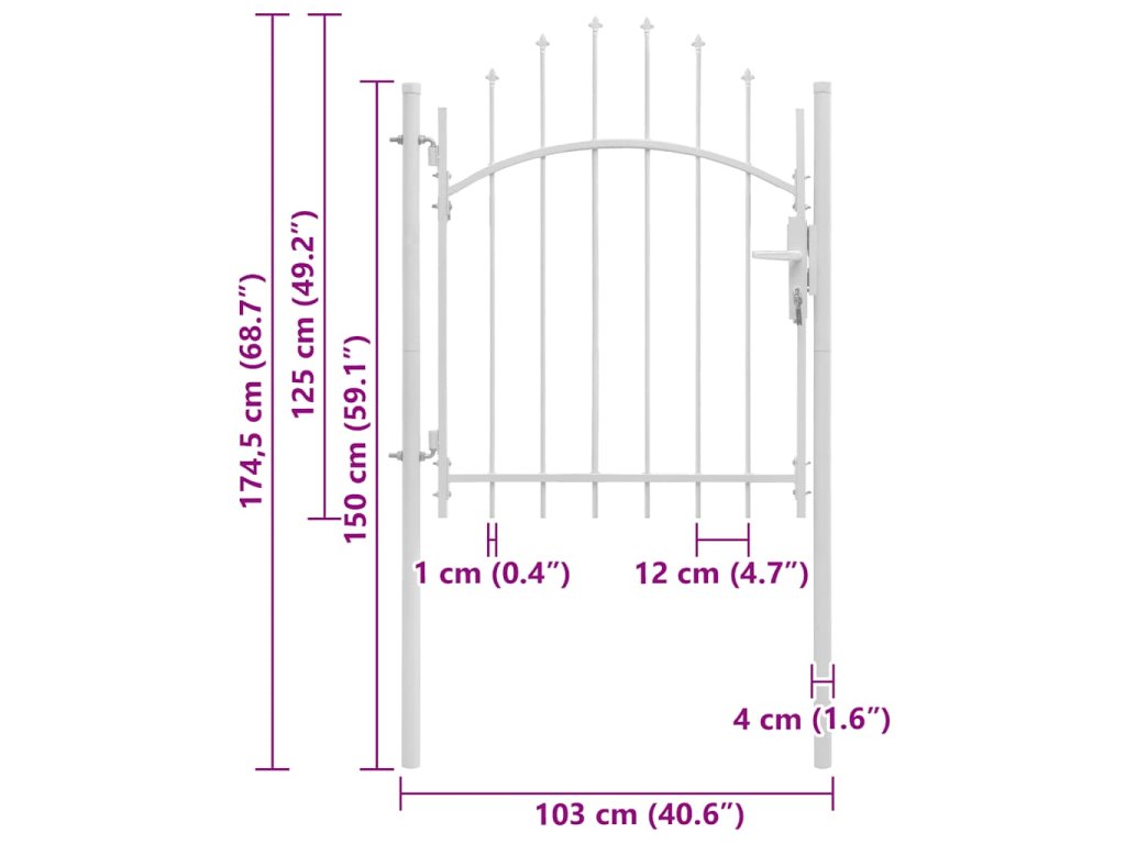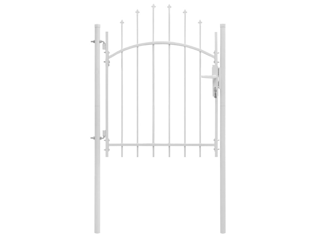 Vrchná časť záhradnej brány má elegantný zaoblený dizajn a vďaka pevným vodorovným oporným tyčiam na spevnenie rámu brána poskytuje optimálnu bezpečnosť a súkromie, a zároveň vytvára pôsobivý vstup na pozemok. Brána je vyrobená z pevnej ocele s práškovou povrchovou úpravou, ktorá je odolná voči hrdzi a korózii. Plotová brána je vybavená uzamykacím systémom a dodáva sa spolu s dvoma pevnými stĺpikmi a robustnými pántmi pre jednoduchú inštaláciu.