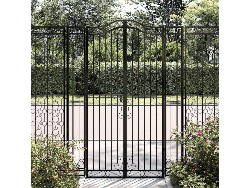 - Trvácny materiál: Kovová záhradná brána je vyrobená z tepaného železa a práškovaná pre trvalú odolnosť. Tepané železo je typ železa, ktorý je húževnatý, kujný, odolný voči korózii a tvárny, vďaka čomu je ideálny pre vonkajšie použitie.