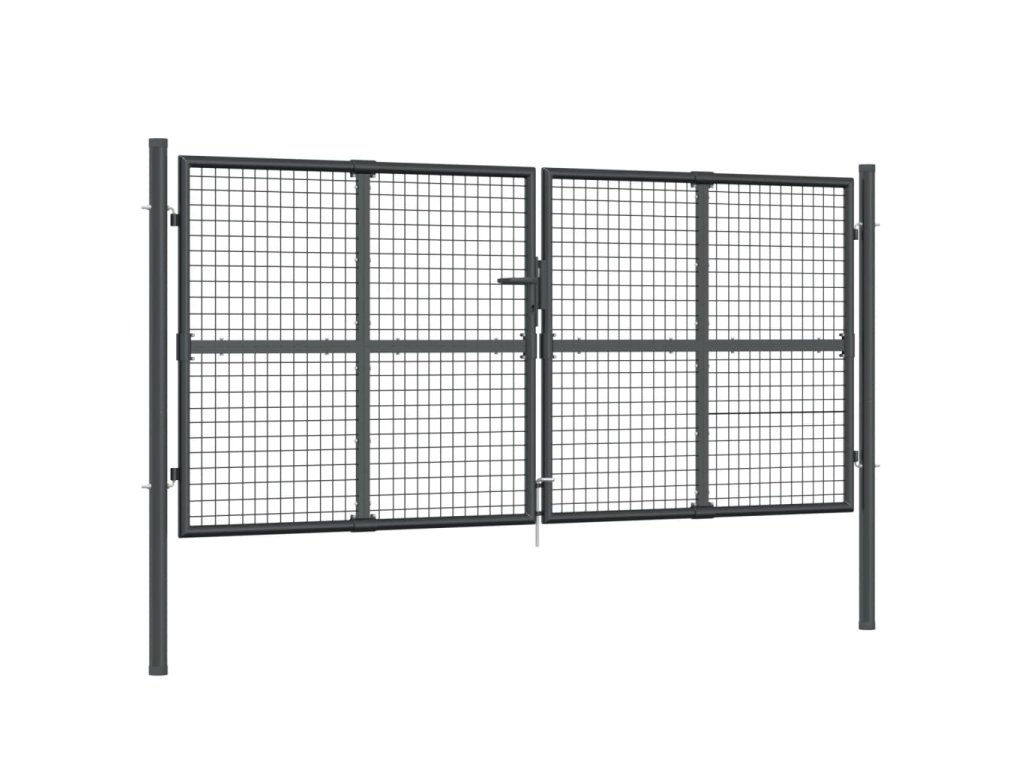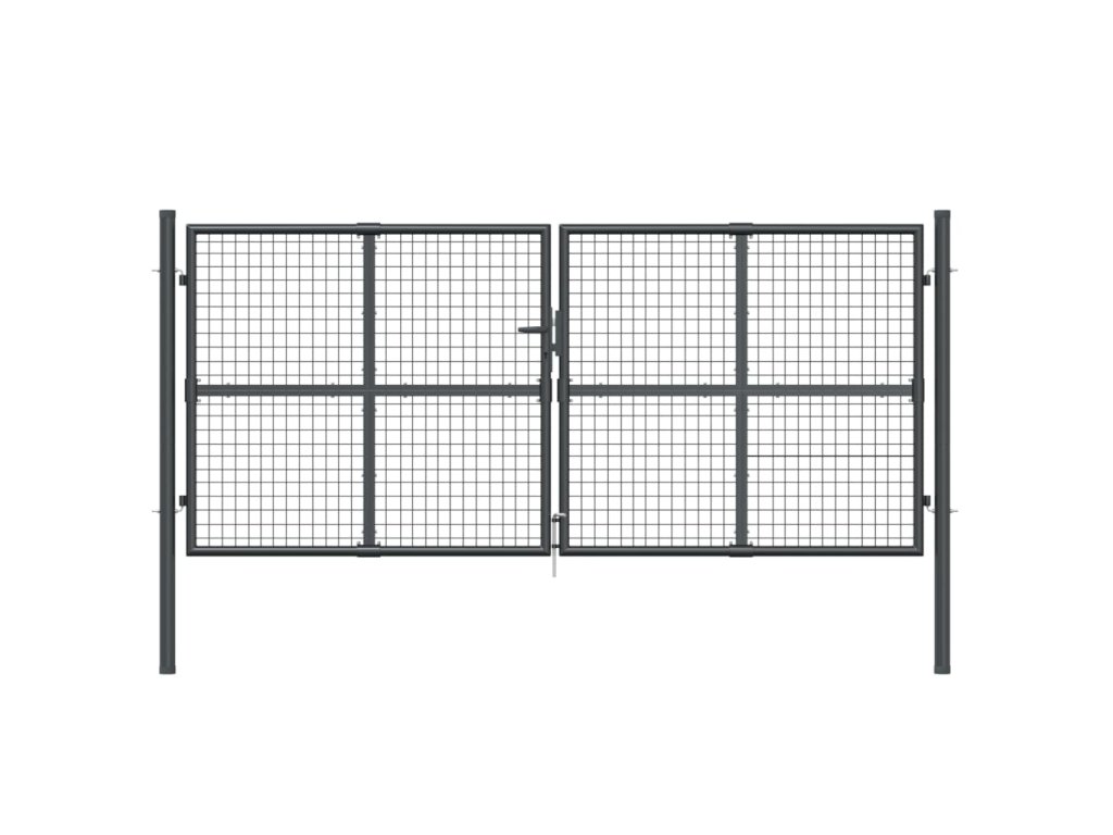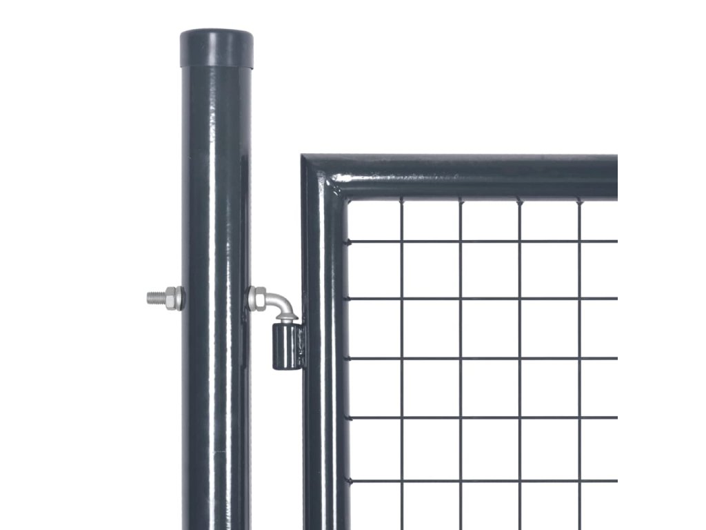 - Jednoduchá montáž: Oceľová záhradná brána má dva bočné stĺpiky so skrutkovými závesmi pre jednoduchú inštaláciu.