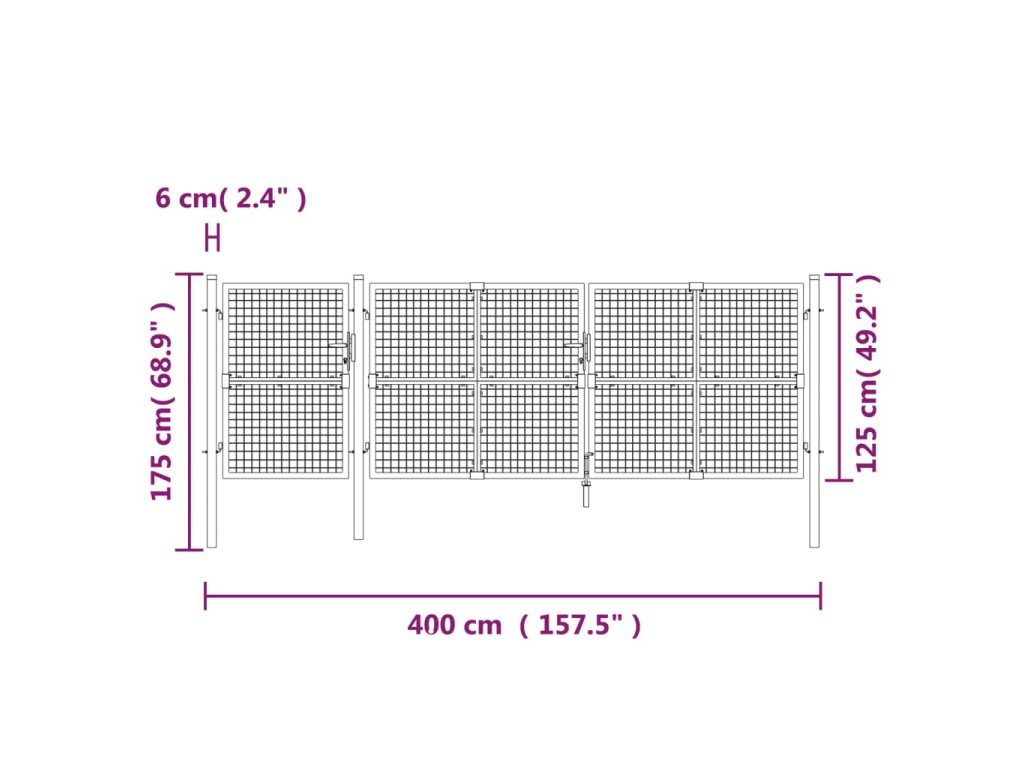 - Jednoduchá montáž: Oceľová záhradná brána má dva bočné stĺpiky so skrutkovými závesmi pre jednoduchú inštaláciu.