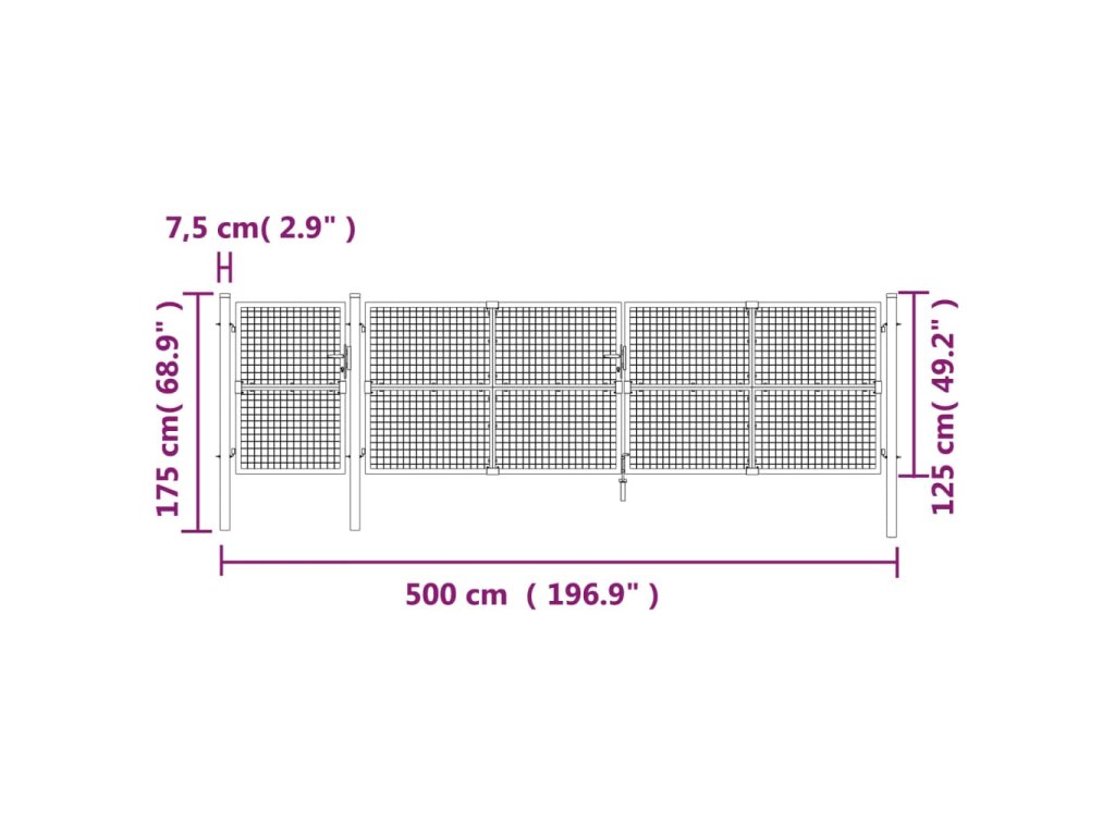 - Jednoduchá montáž: Oceľová záhradná brána má dva bočné stĺpiky so skrutkovými závesmi pre jednoduchú inštaláciu.