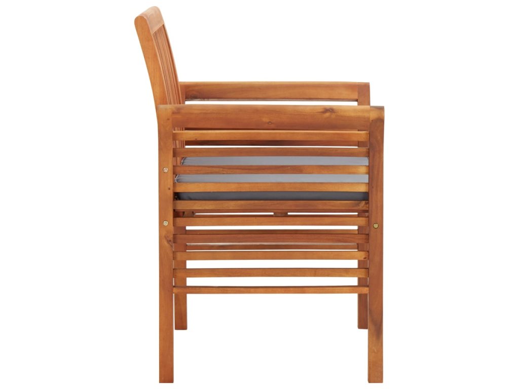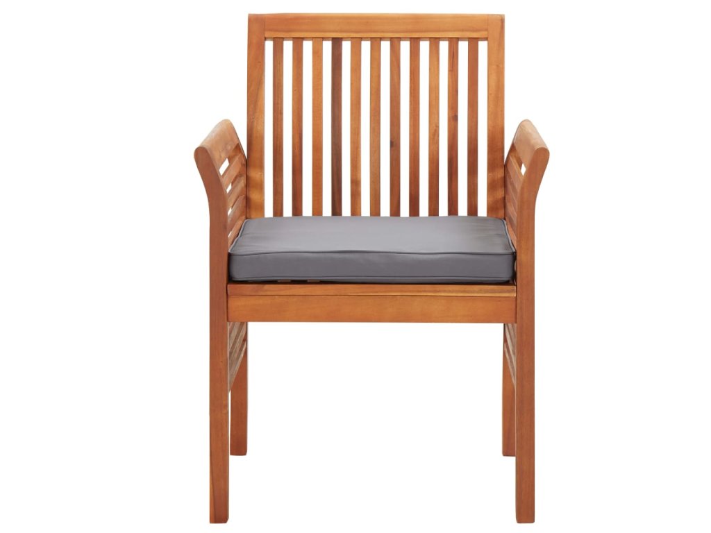 Vďaka drevenému akáciovému rámu s povrchovou úpravou odolnou voči poveternostným vplyvom prináša táto akáciová stolička klasický vzhľad na vašu terasu alebo záhradu a vášmu vonkajšiemu priestoru zároveň dodáva prirodzený pocit. Doslova sa posaďte a relaxujte, vďaka hlbokej sedačke a útulnej penovej podložke môžete oddych stráviť vonku vo vynikajúcom pohodlí. Vankúš odolný voči vode umožňuje jednoduché čistenie.