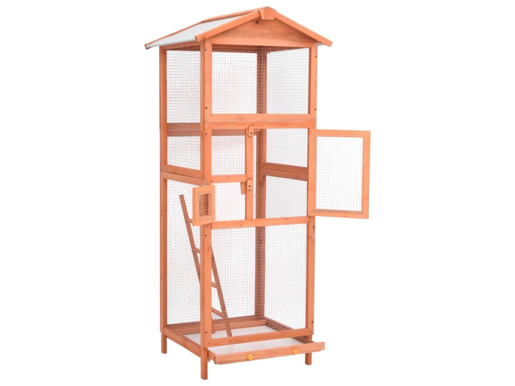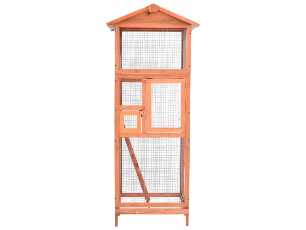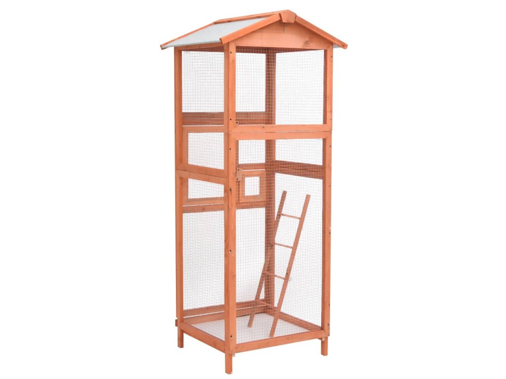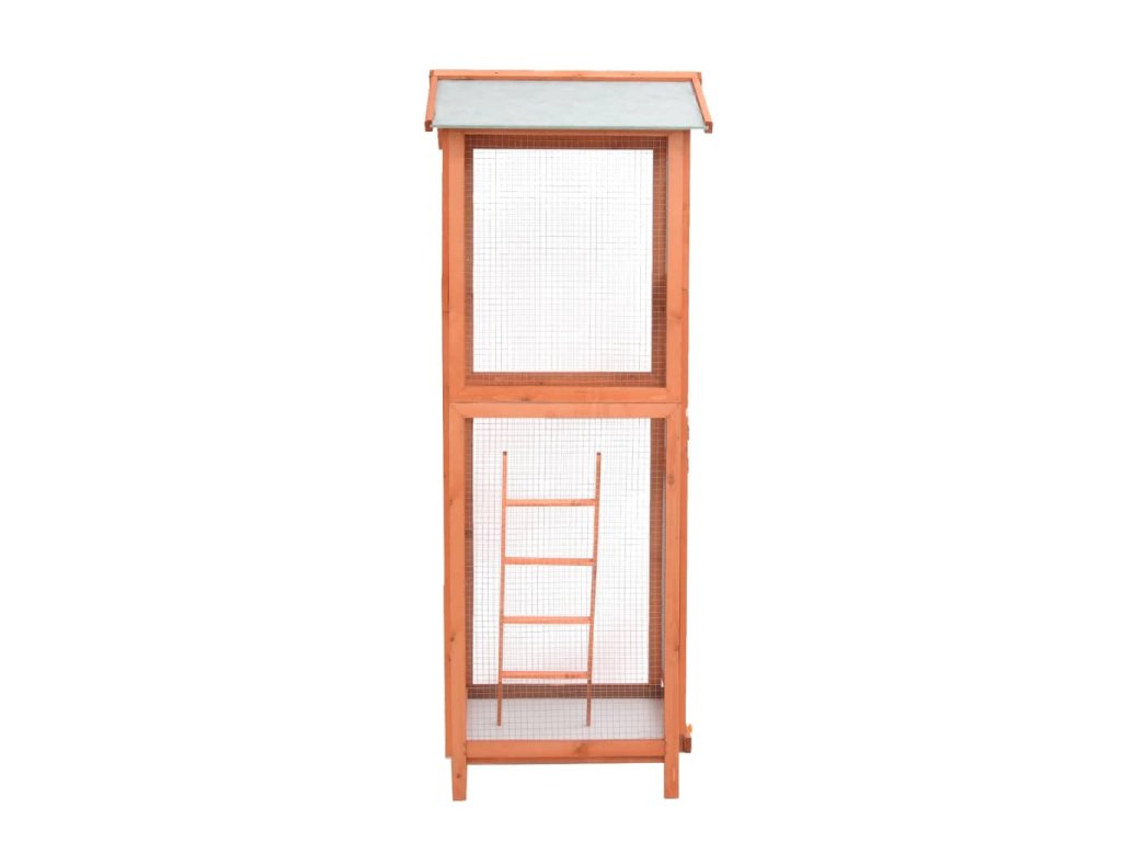 Vonkajšia vtáčia klietka má vysokokvalitný rám z jedľového dreva, vďaka čomu je skutočne pevná a trvácna. Strieška je pokrytá vodoodolnou látkou, ktorá vtáky ochráni pred dažďom. Rebrík vtákom umožní jednoducho prechádzať hore a dole. Vďaka vyťahovaciemu dnu v spodnej časti sa klietka pre vtáky dá bez problémov vyčistiť. Voliéra má dvoje dvierka - väčšie na čistenie a menšie na kŕmenie. Obidve dvierka sa dajú uzamknúť zasunutím západky.