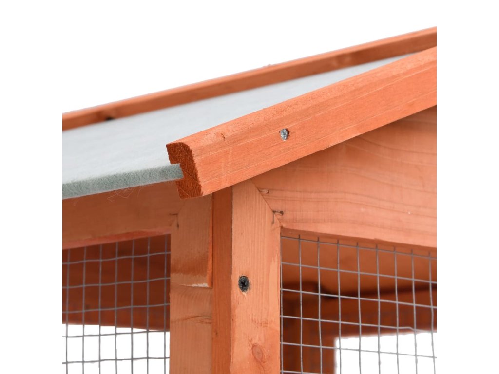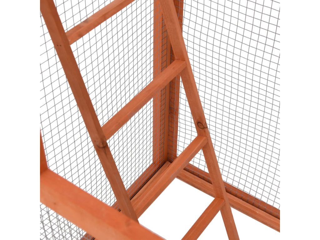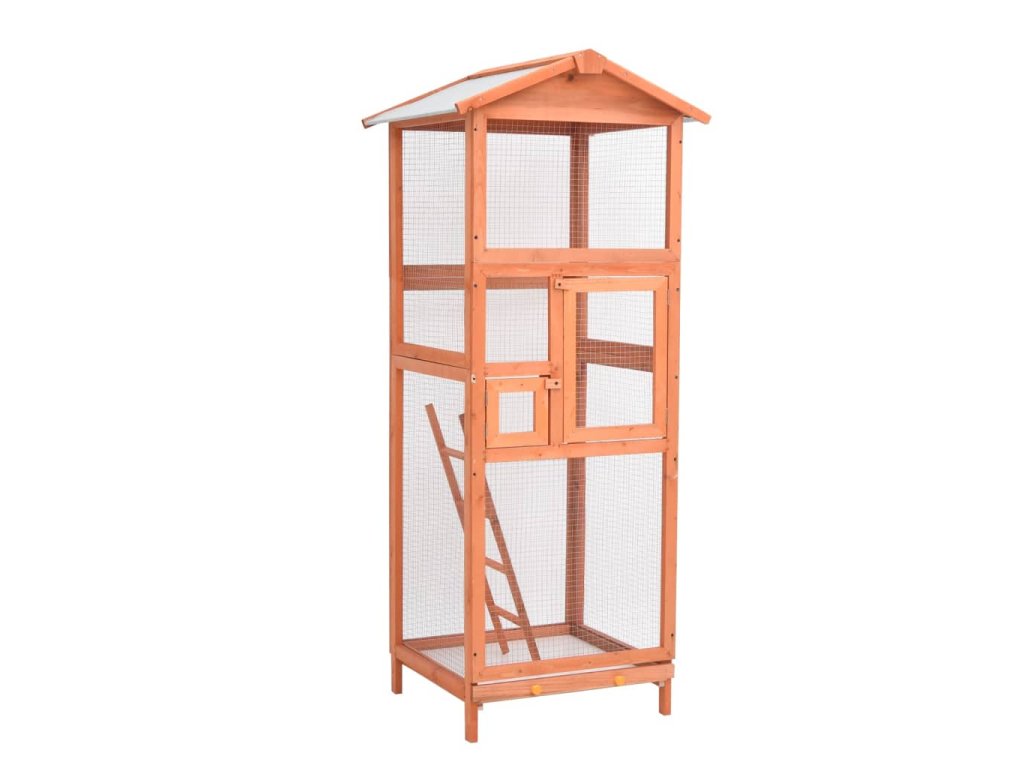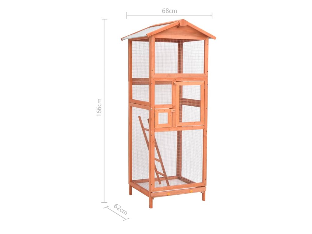 Vonkajšia vtáčia klietka má vysokokvalitný rám z jedľového dreva, vďaka čomu je skutočne pevná a trvácna. Strieška je pokrytá vodoodolnou látkou, ktorá vtáky ochráni pred dažďom. Rebrík vtákom umožní jednoducho prechádzať hore a dole. Vďaka vyťahovaciemu dnu v spodnej časti sa klietka pre vtáky dá bez problémov vyčistiť. Voliéra má dvoje dvierka - väčšie na čistenie a menšie na kŕmenie. Obidve dvierka sa dajú uzamknúť zasunutím západky.