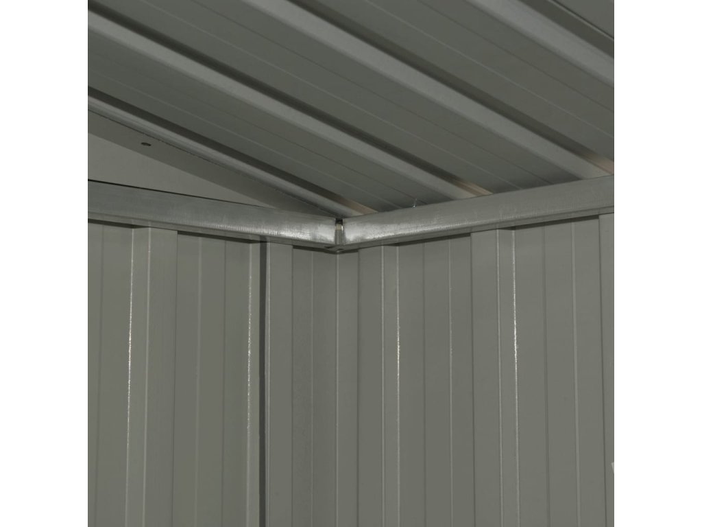 - Stabilný a odolný: Pozinkovaná oceľová konštrukcia spolu s pozinkovaným povrchom ju robí odolnou a pevnou, takže nekoroduje ani ju neovplyvňuje extrémne počasie. Obsahuje tiež oceľový podlahový rám, ktorý zvyšuje stabilitu a je ideálny pre drevenú podlahu (drevo nie je súčasťou balenia).
