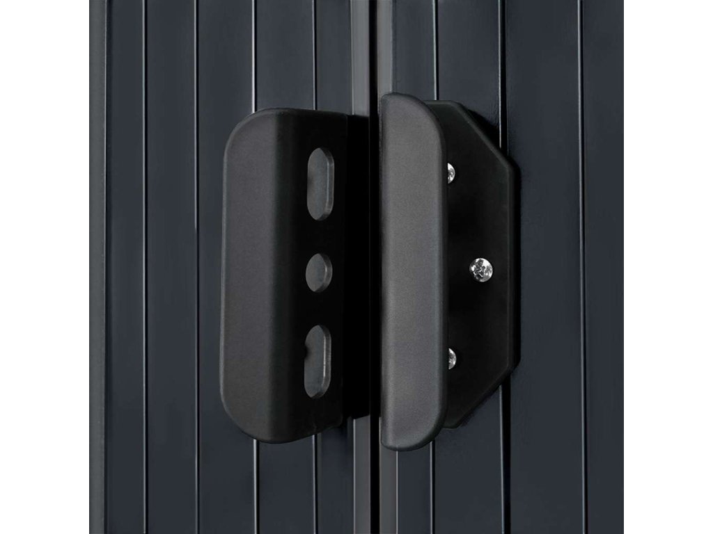 - Praktický dizajn: Tento skladovací domček má 4 vetracie otvory, 2 vpredu a 2 vzadu, čo zaisťuje vynikajúce vetranie. Dvojité posuvné dvere vpredu umožňujú jednoduchý vstup a výstup.