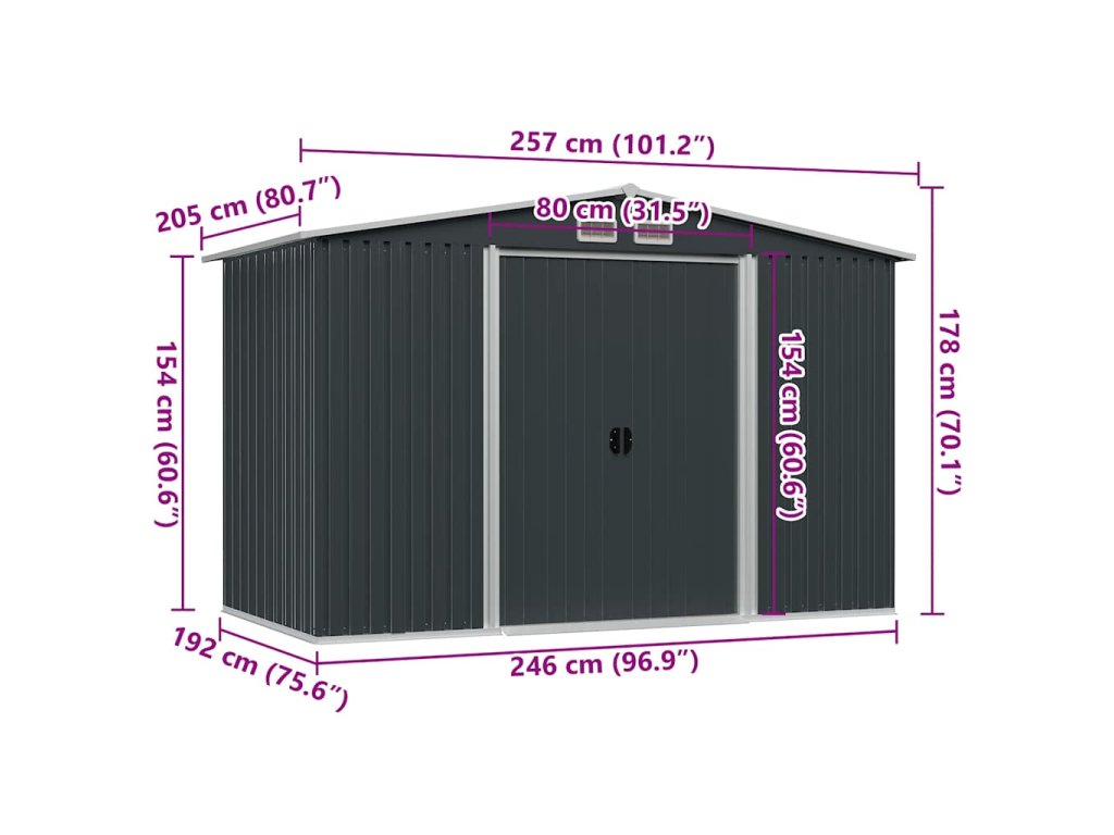 Tento kovový skladovací domček bude skvelým doplnkom každej záhrady, trávnika alebo inej záhrady. Je ideálny na uskladnenie záhradného náradia, zariadení na starostlivosť o trávnik, domácich potrieb a oveľa viac!