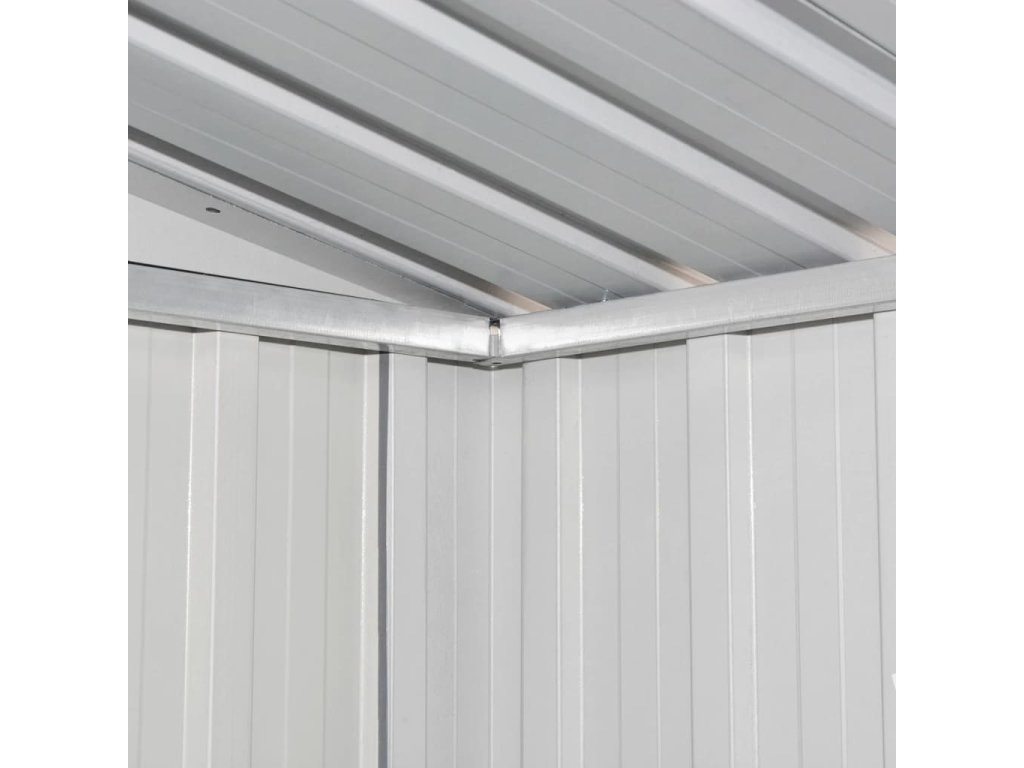 - Stabilný a odolný: Vďaka pozinkovanej oceli odolnej voči korózii je skladovací domček pevný, odolný a vyrobený tak, aby vydržal. Súčasťou je aj oceľový základ, ktorý dodáva extra stabilitu.