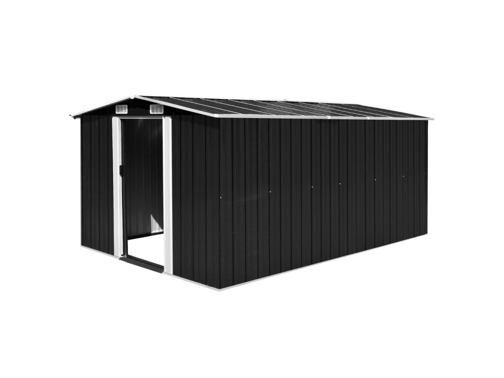 Na prednej aj zadnej strane záhradného domčeka sa nachádzajú vetracie otvory, ktoré zabezpečujú efektívne vetranie. Dvojité posuvné dvere v prednej časti umožňujú jednoduchý prístup do domčeka. Vďaka pozinkovanej oceľovej konštrukcii a práškovej povrchovej úprave je táto kôlňa na náradie trvácna a pevná.