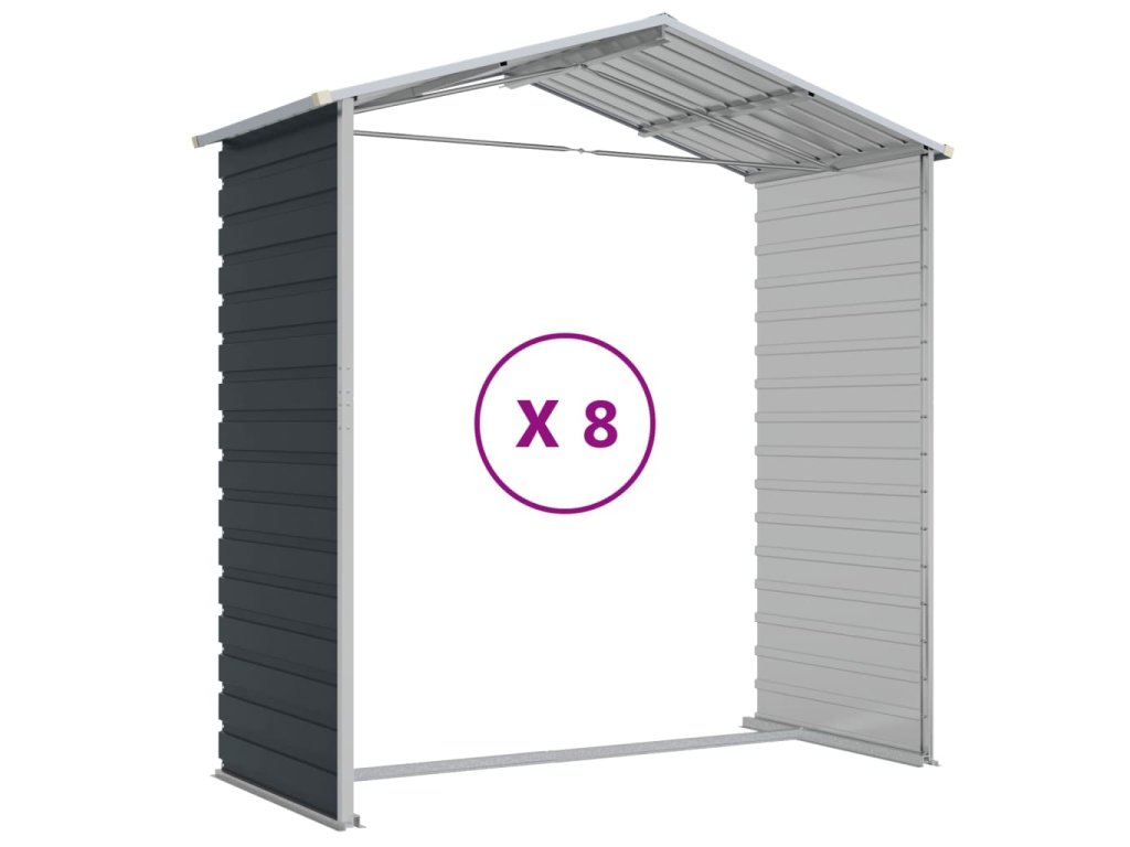 - Dostatok úložného priestoru: Táto kovová kôlňa poskytuje dostatok priestoru na uskladnenie palivového dreva, záhradného náradia, nábytku, vybavenia a ďalších vecí.