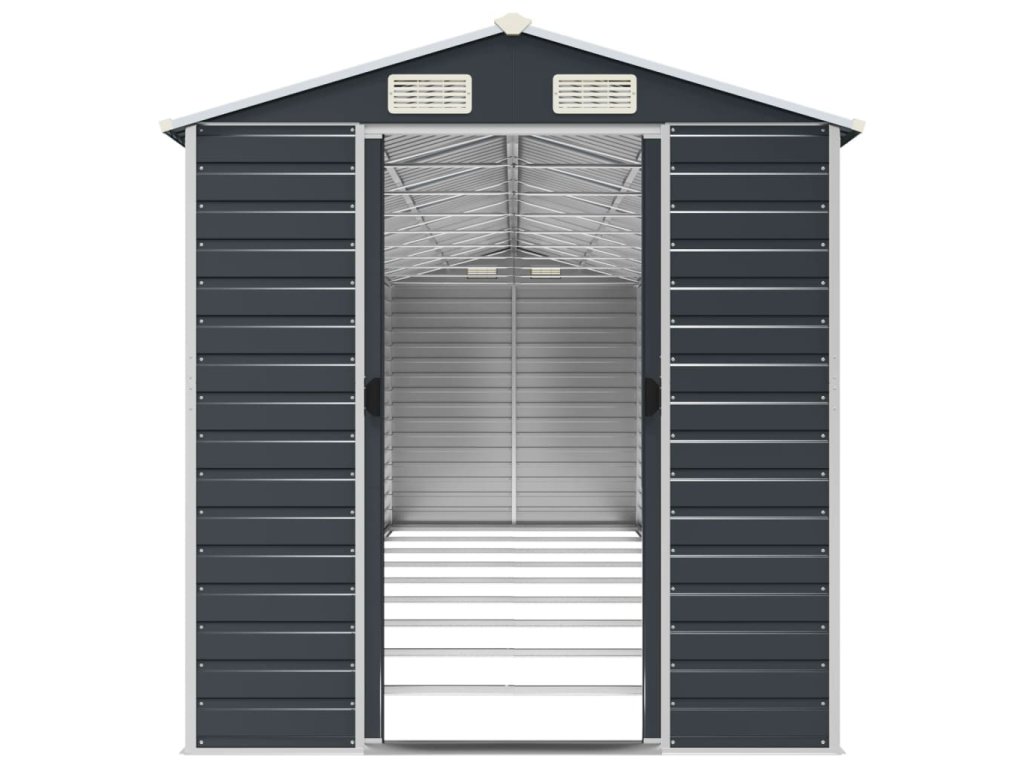 - Odolný materiál: Záhradný domček na náradie je vyrobený z pozinkovanej ocele, ktorá zabraňuje hrdzaveniu a vydrží dlhodobé používanie. Oceľ je mimoriadne tvrdý a pevný materiál. Ponúka robustnosť a stabilitu. Galvanizácia poskytuje lepšiu ochranu pred koróziou a je užitočná pre produkty, ktoré sa budú používať vonku, ako aj v náročných podmienkach.