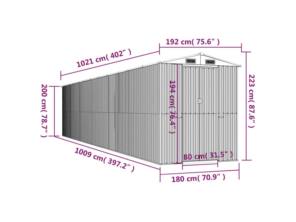 - Odolný materiál: Záhradný domček na náradie je vyrobený z pozinkovanej ocele, ktorá zabraňuje zhrdzaveniu a vydrží dlhodobé používanie.