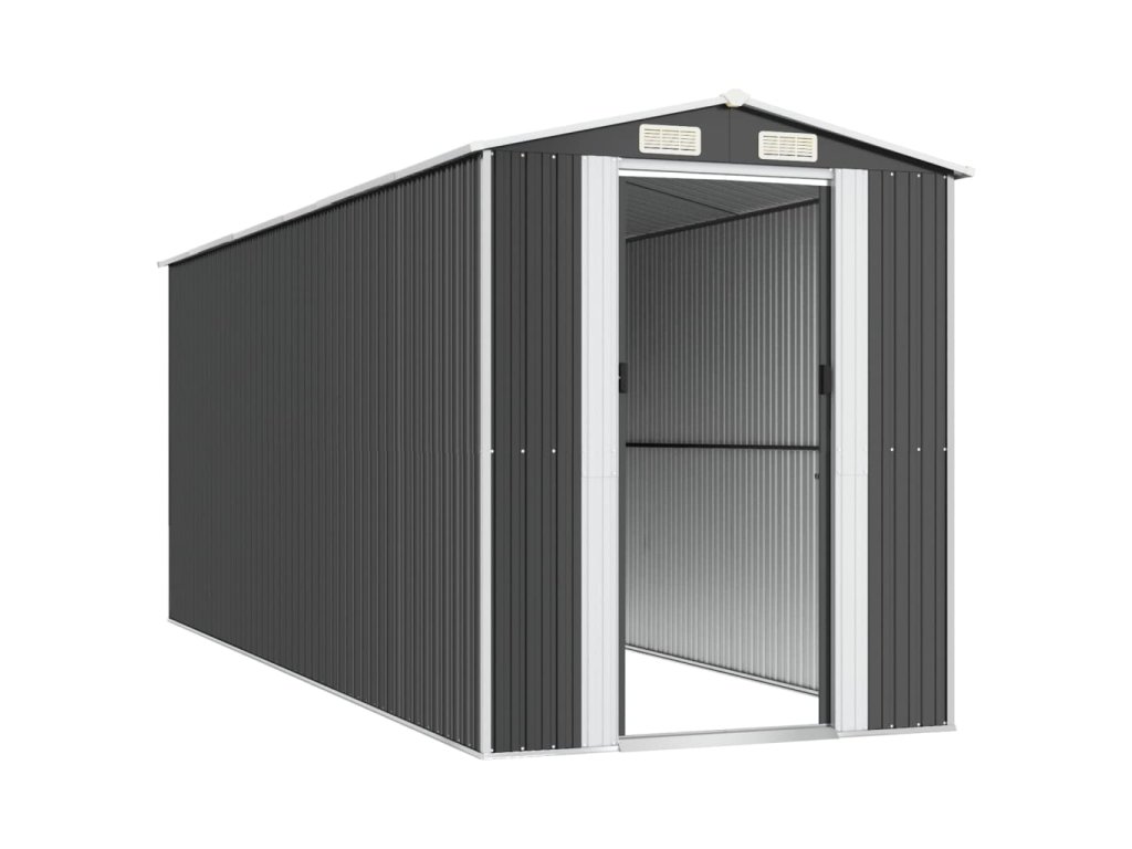 - Odolný materiál: Záhradný domček na náradie je vyrobený z pozinkovanej ocele, ktorá zabraňuje zhrdzaveniu a vydrží dlhodobé používanie.