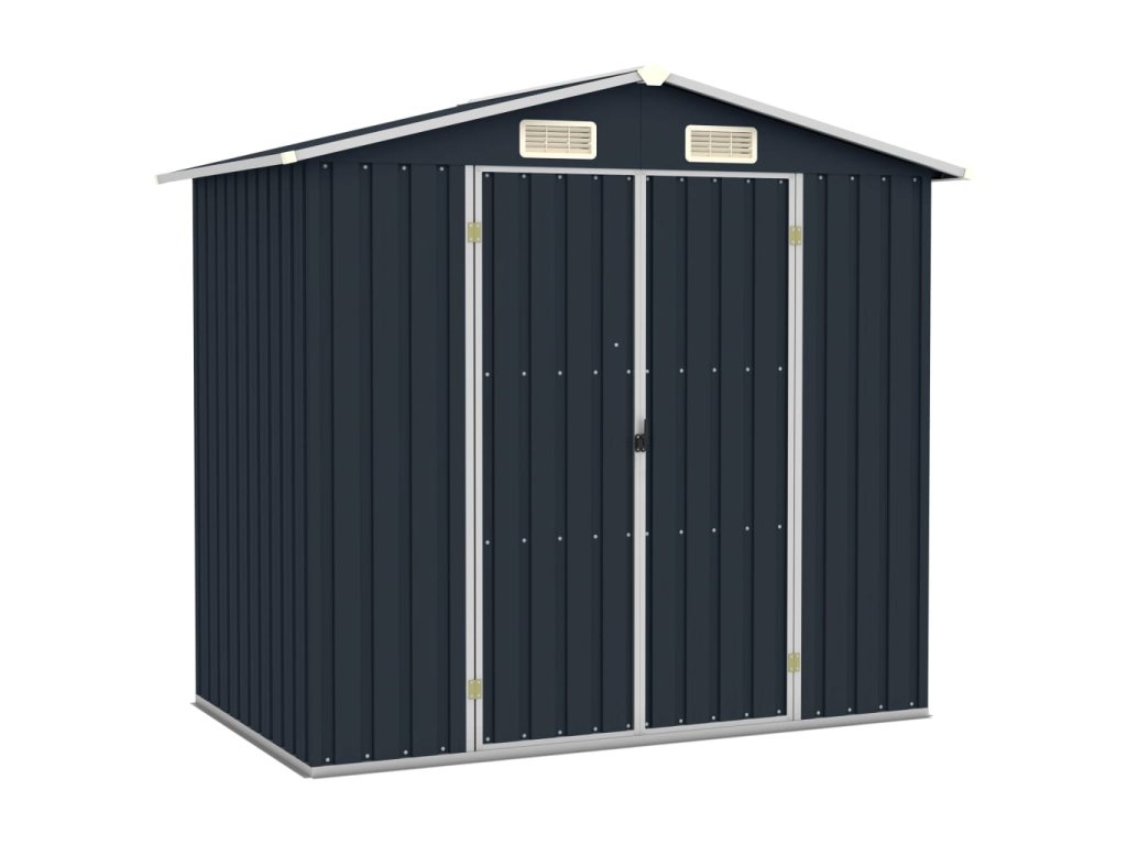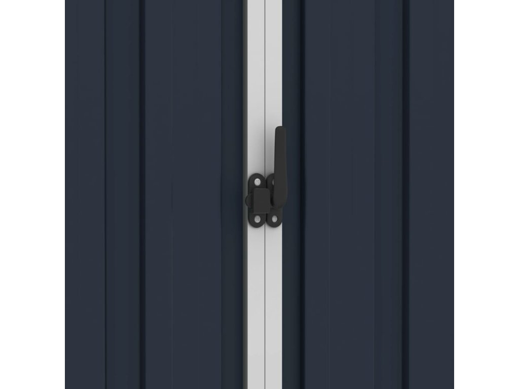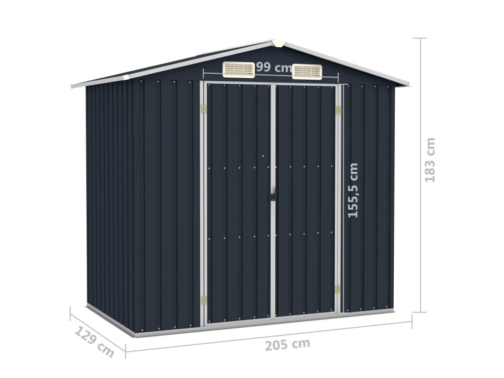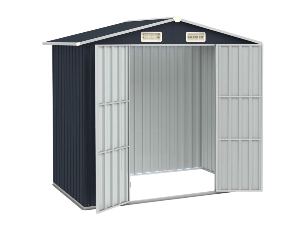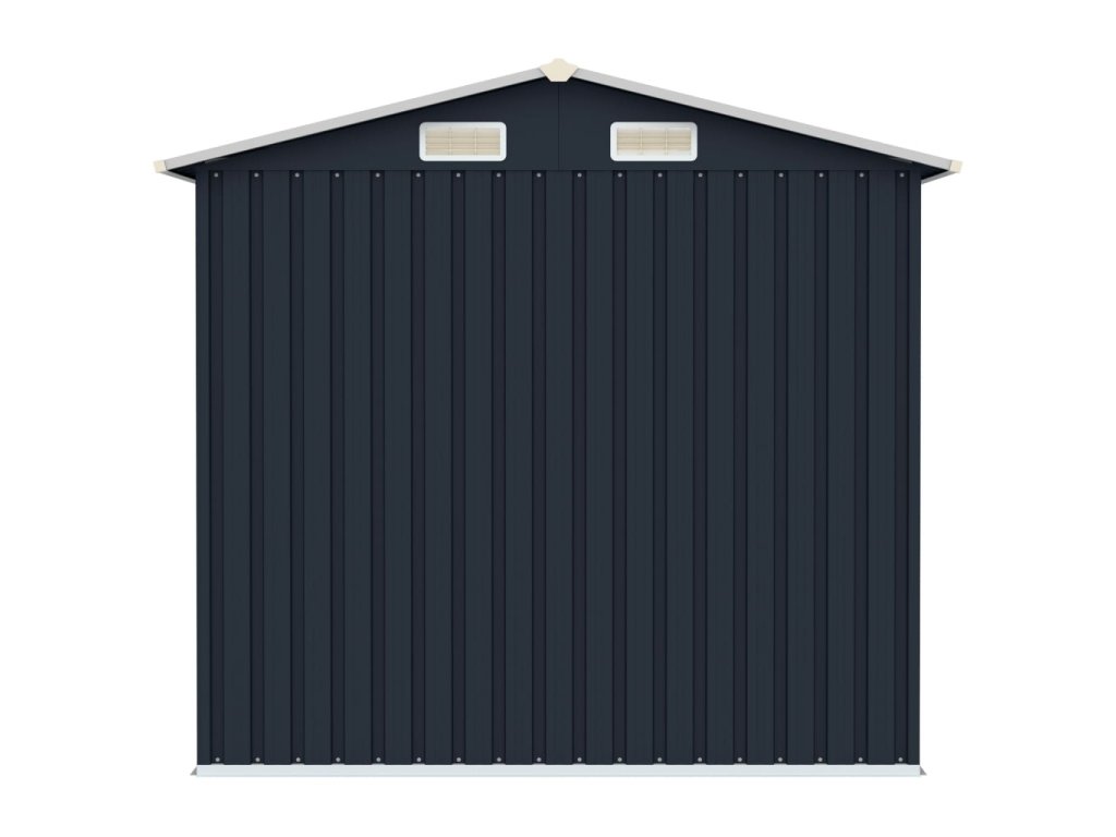 Tento skladovací domček je vybavený vetracími otvormi, ktoré slúžia ako clony, ktoré bránia dažďu. Poskytuje tiež neustále vetranie, aby sa znížilo hromadenie vlhkosti a zápachu vo vnútri. Záhradná skladovacia dielňa je vyrobená z pozinkovanej ocele, vyžaduje si minimálnu údržbu a je veľmi odolná. Dvojité dvierka vpredu umožňujú ľahký vstup a výstup. Dažďová voda automaticky odteká zo strechy vďaka naklonenému dizajnu.