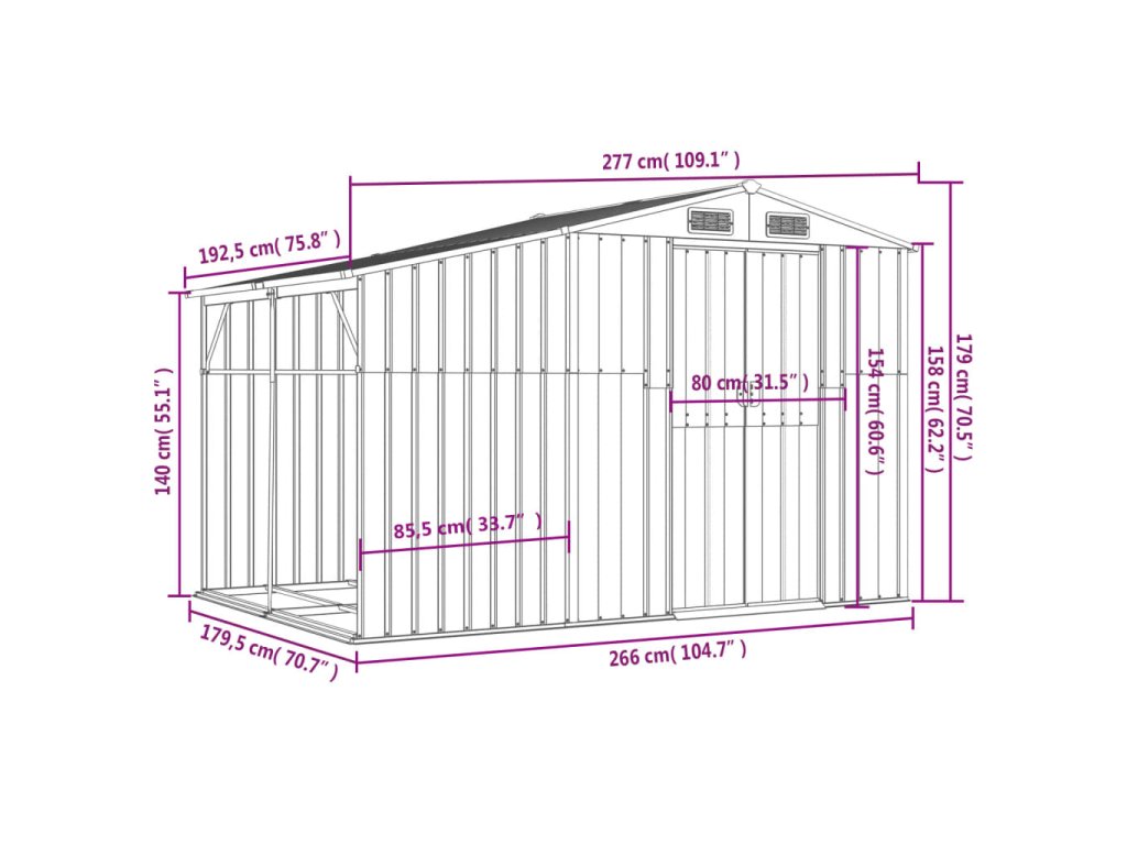 - Odolný materiál: Záhradný domček na náradie je vyrobený z pozinkovanej ocele, ktorá zabraňuje hrdzaveniu a vydrží dlhodobé používanie. Oceľ je mimoriadne tvrdý a pevný materiál. Ponúka robustnosť a stabilitu. Galvanizácia poskytuje lepšiu ochranu pred koróziou a je užitočná pre produkty, ktoré sa budú používať vonku, ako aj v náročných podmienkach.