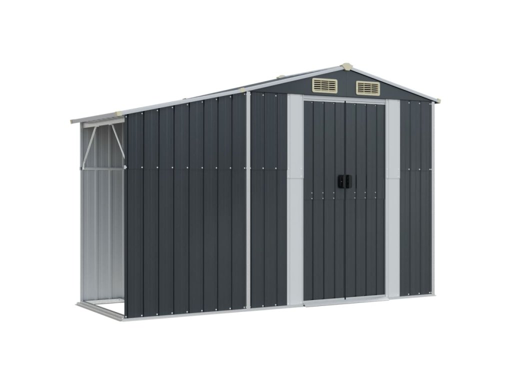 - Odolný materiál: Záhradný domček na náradie je vyrobený z pozinkovanej ocele, ktorá zabraňuje hrdzaveniu a vydrží dlhodobé používanie. Oceľ je mimoriadne tvrdý a pevný materiál. Ponúka robustnosť a stabilitu. Galvanizácia poskytuje lepšiu ochranu pred koróziou a je užitočná pre produkty, ktoré sa budú používať vonku, ako aj v náročných podmienkach.