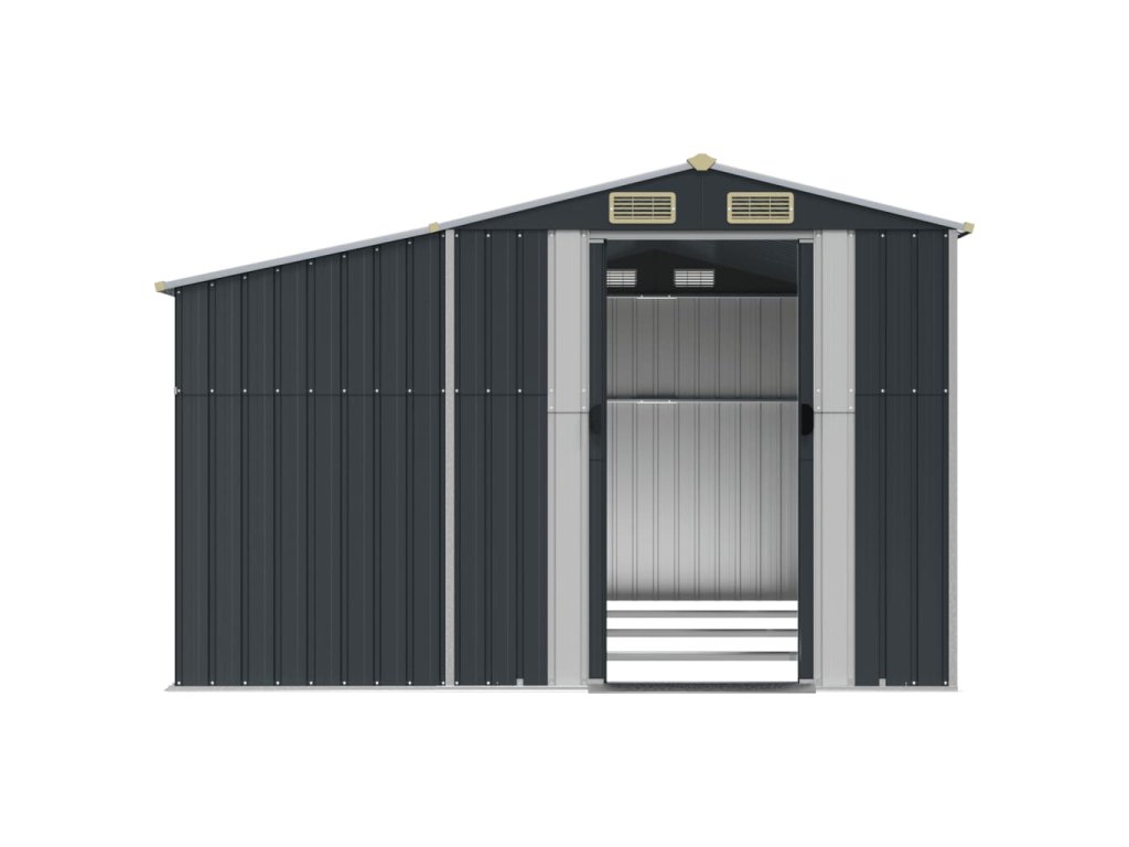 - Odolný materiál: Záhradný domček na náradie je vyrobený z pozinkovanej ocele, ktorá zabraňuje hrdzaveniu a vydrží dlhodobé používanie. Oceľ je mimoriadne tvrdý a pevný materiál. Ponúka robustnosť a stabilitu. Galvanizácia poskytuje lepšiu ochranu pred koróziou a je užitočná pre produkty, ktoré sa budú používať vonku, ako aj v náročných podmienkach.