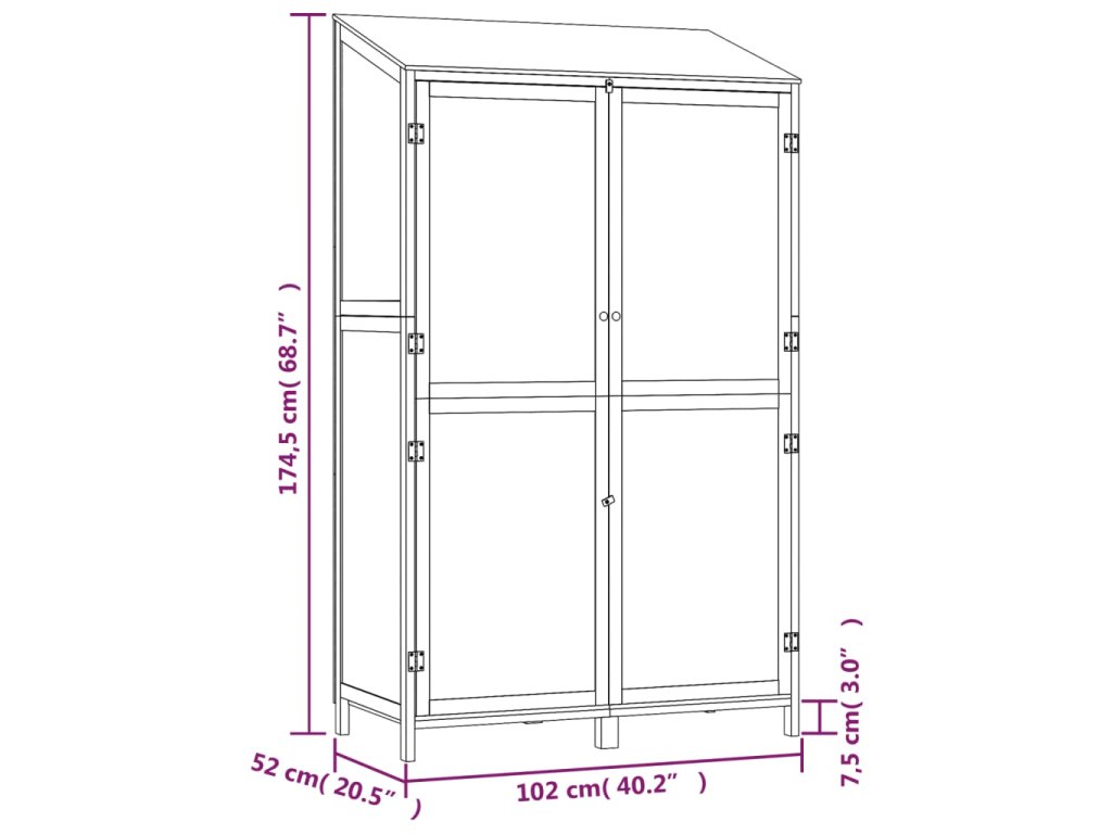 - Pevný rám: Drevený rám zaisťuje pevnosť a stabilitu. Záhradná skrinka ponúkne ochranu pred špinou, prachom, silným vetrom a nepriaznivým počasím.