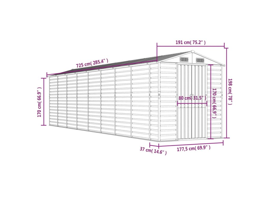 - Dostatok úložného priestoru: Táto kovová kôlňa poskytuje dostatok priestoru na uskladnenie palivového dreva, záhradného náradia, nábytku, vybavenia a ďalších vecí.