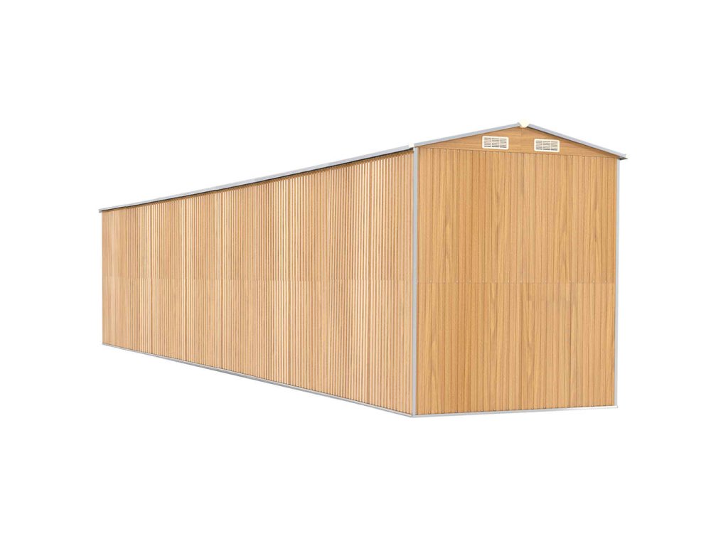 - Odolný materiál: Záhradný domček na náradie je vyrobený z pozinkovanej ocele, ktorá je odolná a nekoroduje, ani ju neovplyvňujú nepriaznivé poveternostné podmienky.