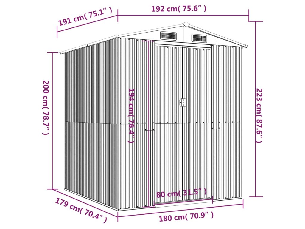 - Odolný materiál: Záhradný domček na náradie je vyrobený z pozinkovanej ocele, ktorá je odolná a nekoroduje, ani ju neovplyvňujú nepriaznivé poveternostné podmienky.