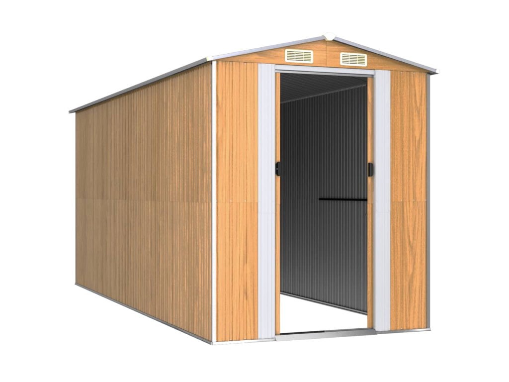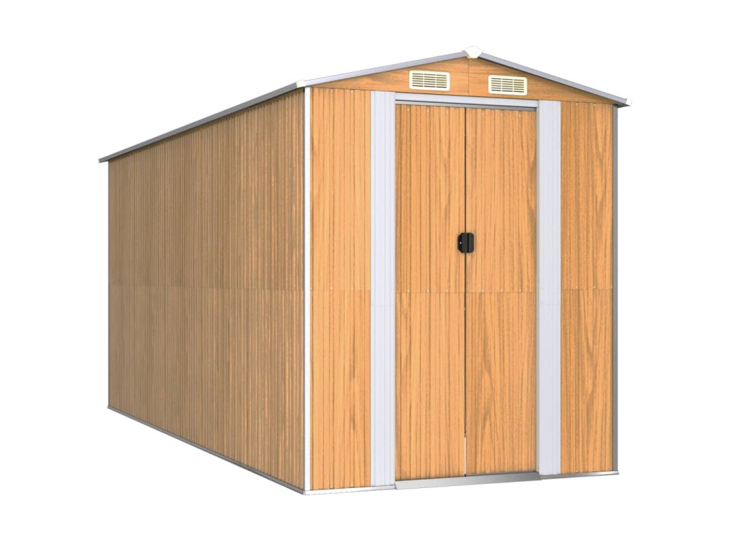 - Odolný materiál: Záhradný domček na náradie je vyrobený z pozinkovanej ocele, ktorá je odolná a nekoroduje, ani ju neovplyvňujú nepriaznivé poveternostné podmienky.
