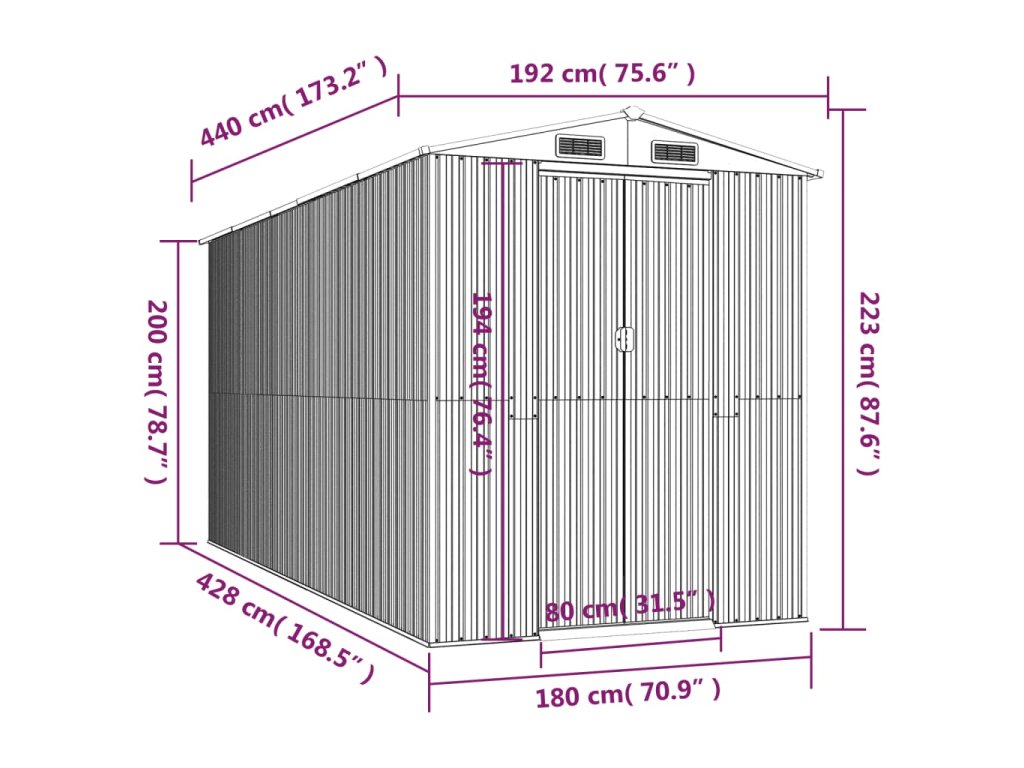 - Praktický dizajn: Táto úložná kôlňa má vetracie otvory v prednej aj zadnej časti, ktoré zaisťujú vynikajúce vetranie. Dvojité posuvné dvere umožňujú ľahký vstup a výstup.