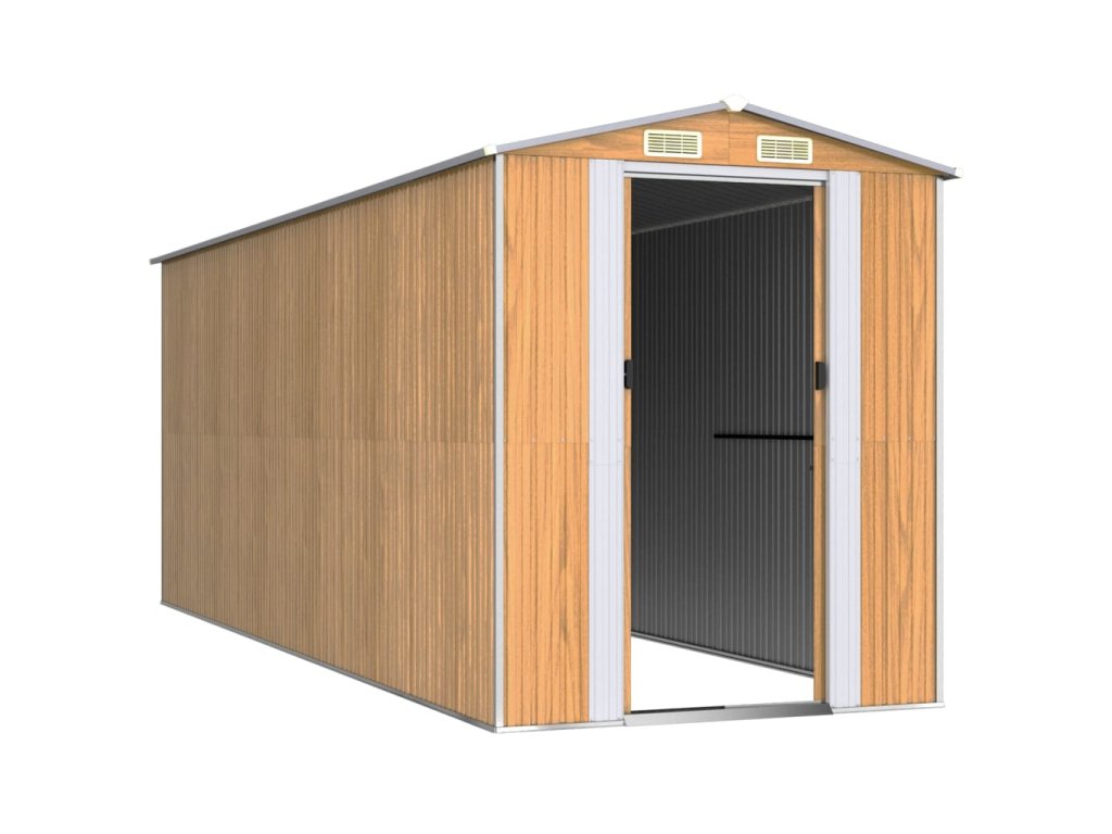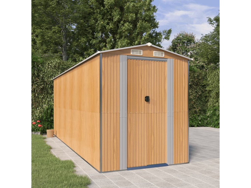 - Odolný materiál: Záhradný domček na náradie je vyrobený z pozinkovanej ocele, ktorá je odolná a nekoroduje, ani ju neovplyvňujú nepriaznivé poveternostné podmienky.