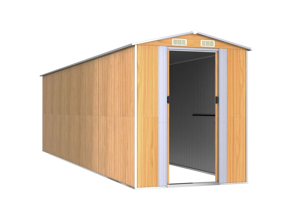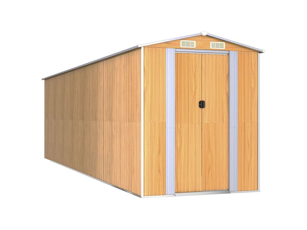 - Odolný materiál: Záhradný domček na náradie je vyrobený z pozinkovanej ocele, ktorá je odolná a nekoroduje, ani ju neovplyvňujú nepriaznivé poveternostné podmienky.