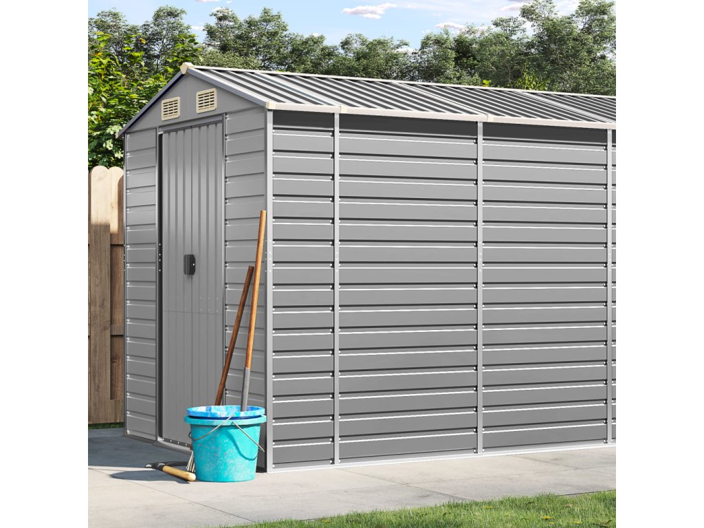 - Odolný materiál: Záhradný domček na náradie je vyrobený z pozinkovanej ocele, ktorá zabraňuje hrdzaveniu a vydrží dlhodobé používanie. Oceľ je mimoriadne tvrdý a pevný materiál. Ponúka robustnosť a stabilitu. Galvanizácia poskytuje lepšiu ochranu pred koróziou a je užitočná pre produkty, ktoré sa budú používať vonku, ako aj v náročných podmienkach.