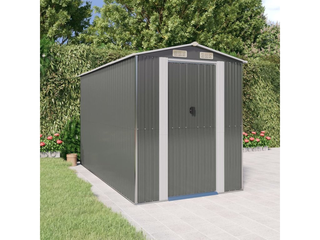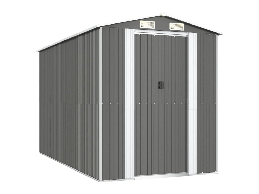 - Odolný materiál: Záhradný domček na náradie je vyrobený z pozinkovanej ocele, ktorá zabraňuje zhrdzaveniu a vydrží dlhodobé používanie.