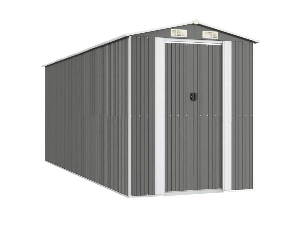 - Odolný materiál: Záhradný domček na náradie je vyrobený z pozinkovanej ocele, ktorá zabraňuje zhrdzaveniu a vydrží dlhodobé používanie.