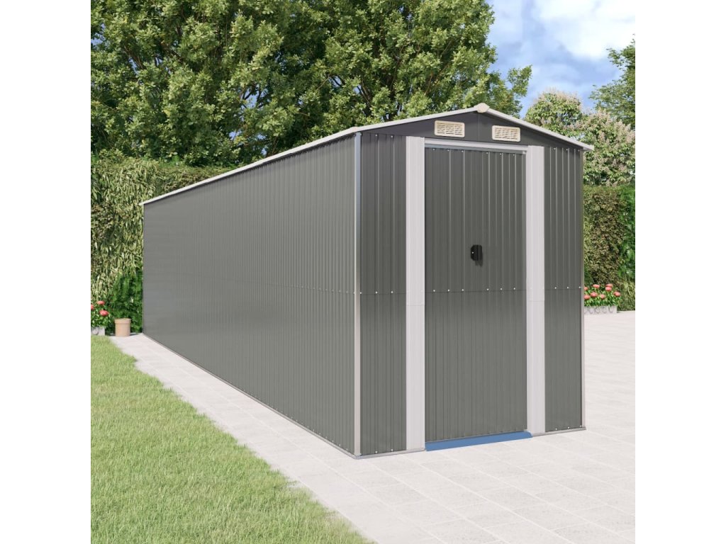 - Odolný materiál: Záhradný domček na náradie je vyrobený z pozinkovanej ocele, ktorá zabraňuje zhrdzaveniu a vydrží dlhodobé používanie.