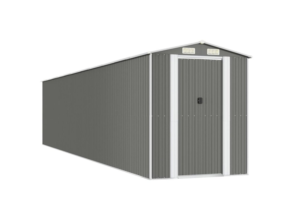 - Odolný materiál: Záhradný domček na náradie je vyrobený z pozinkovanej ocele, ktorá zabraňuje zhrdzaveniu a vydrží dlhodobé používanie.