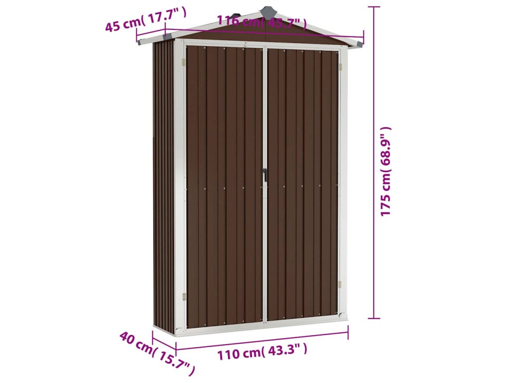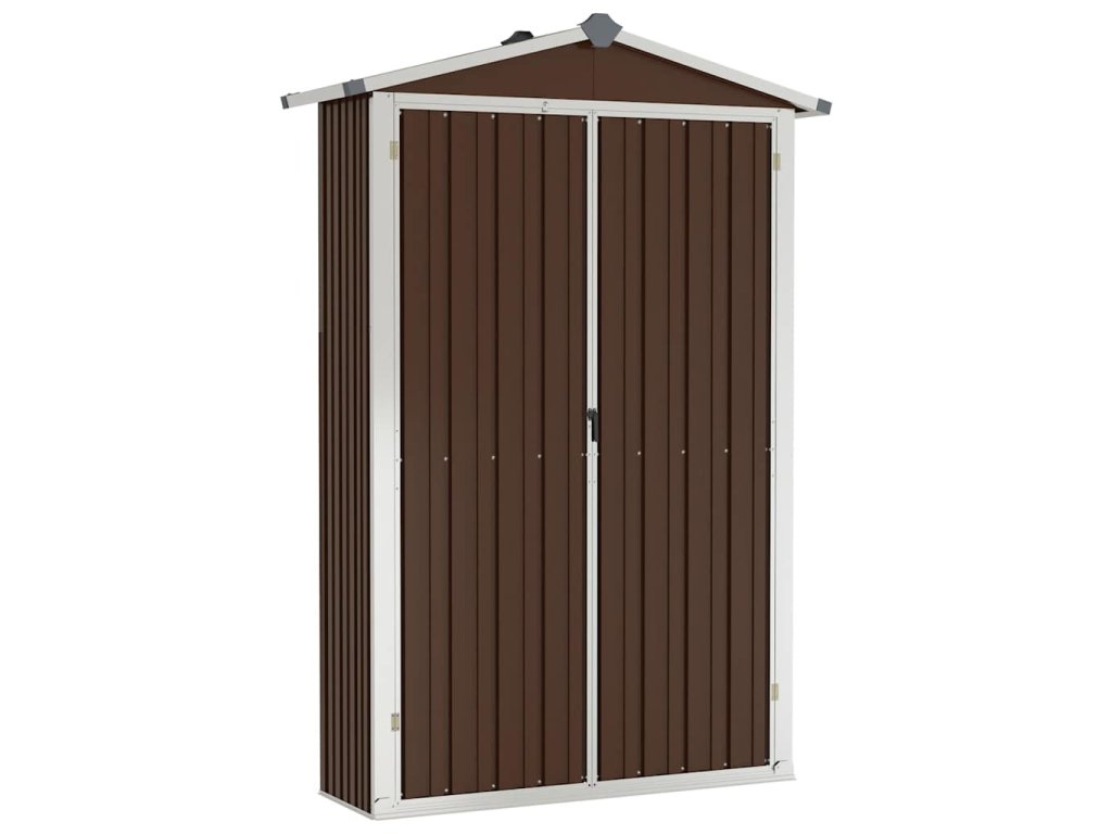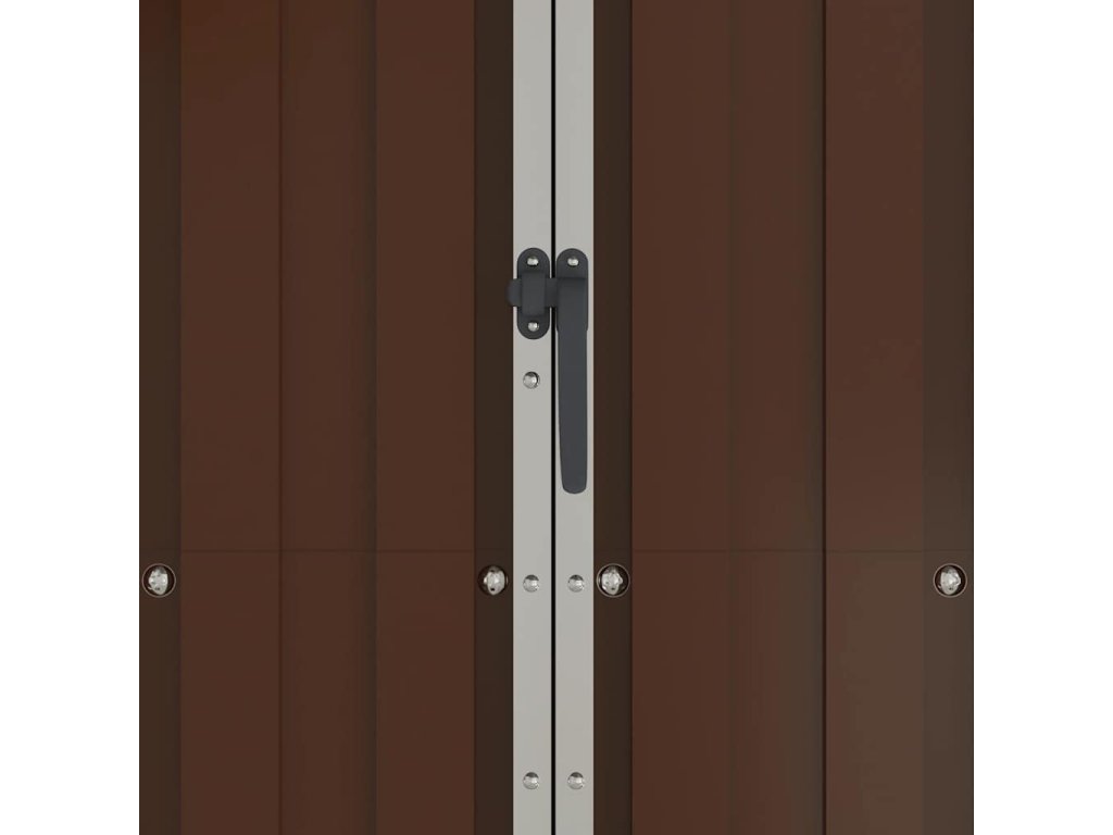 Tento skladovací domček je vybavený vetracími otvormi, ktoré zabezpečujú vetranie a znižujú hromadenie vlhkosti a zápachu v dome. Vďaka policiam ponúka dostatok úložného priestoru na usporiadanie vašich dôležitých vecí. Okrem toho je tento vonkajší skladovací domček vyrobený z pozinkovanej ocele, takže vyžaduje minimálnu údržbu a je veľmi odolný. Dvojité otváracie dvere v prednej časti umožňujú jednoduchý vstup a výstup. Dažďová voda automaticky odteká zo strechy vďaka šikmej konštrukcii.
