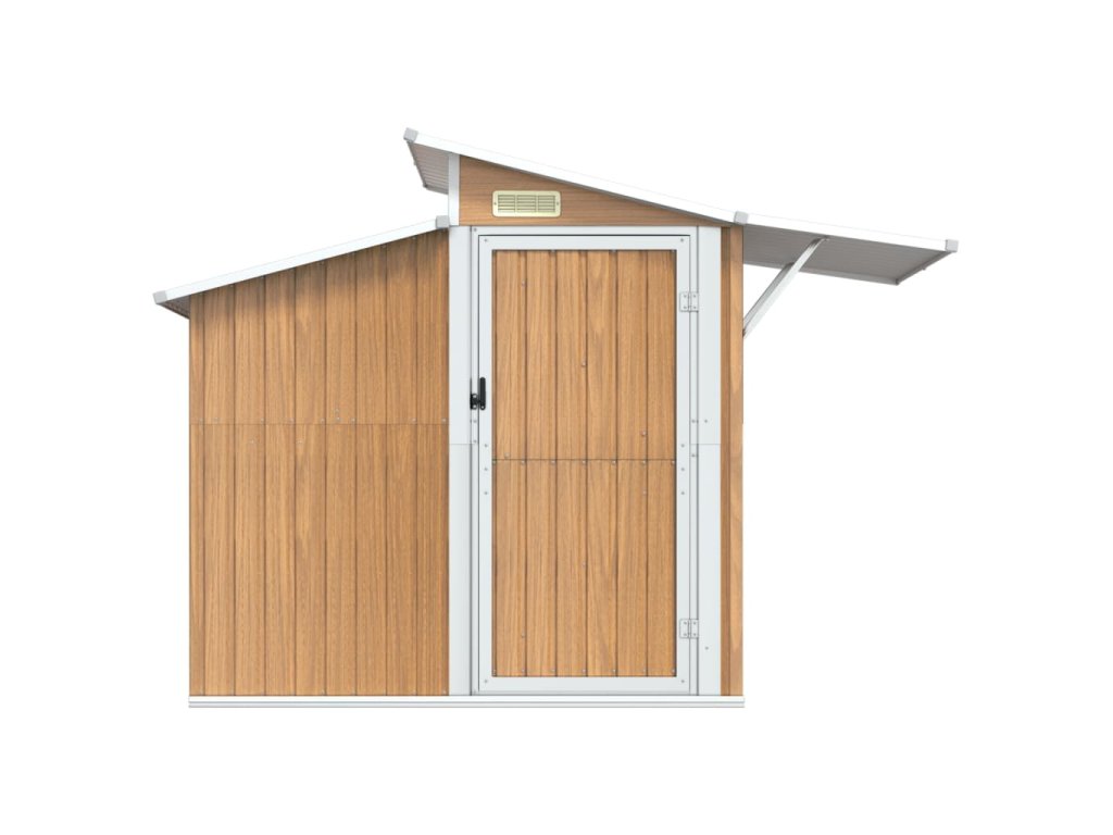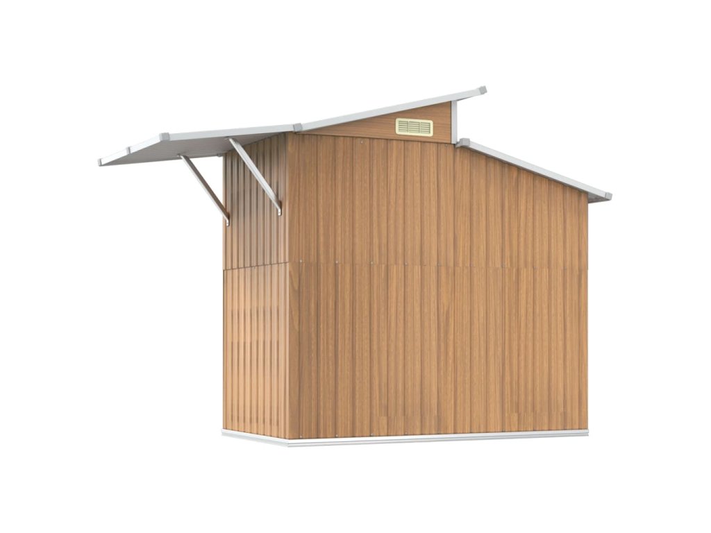- Praktický vetrací otvor: Praktický vetrací otvor umožňuje cirkuláciu vzduchu vo vnútri vonkajšieho úložného domu, čím sa zabezpečí, že nevznikajú žiadne nepríjemné pachy. Priehľadná doska na bočnej streche zároveň prepúšťa do prístrešku prirodzené svetlo.