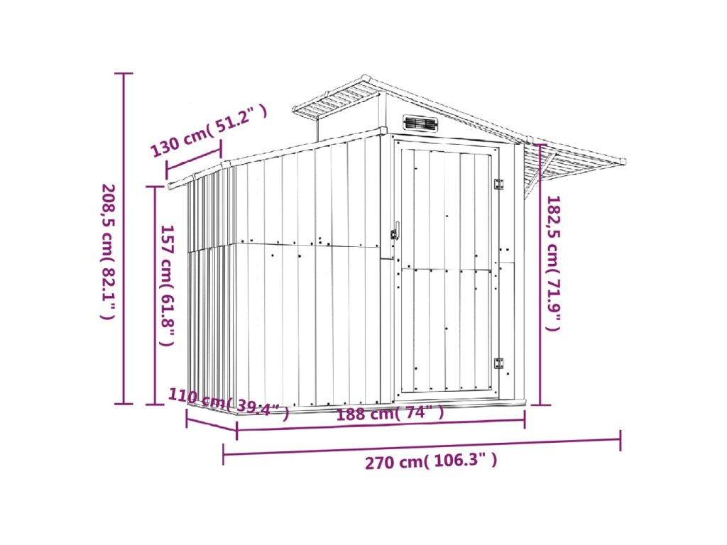- Odolný materiál: Záhradný domček na náradie je vyrobený z pozinkovanej ocele, ktorá zabraňuje hrdzaveniu a vydrží dlhodobé používanie.