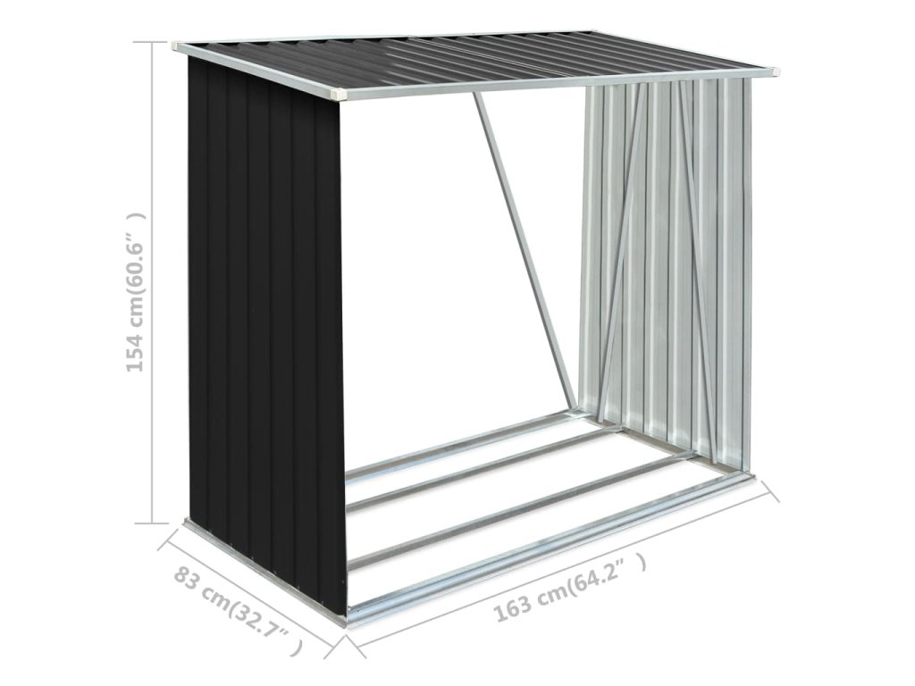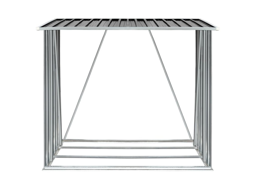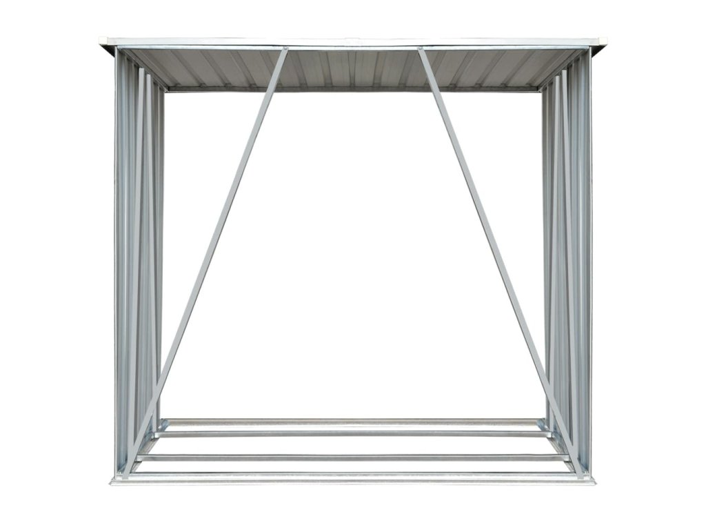 Má stabilnú konštrukciu s oceľovými nosnými tyčami a extra rúrkami na oboch stranách. Keďže je vyrobený z pozinkovanej ocele, sklad na drevo vyžaduje minimálnu údržbu a je veľmi odolný. Tento sklad na drevo obsahuje oceľový podlahový rám pre väčšiu stabilitu a zvýšené podlahové lamely, ktoré udržiavajú drevo vetrané a suché. Dažďová voda bude vďaka šikmej konštrukcii automaticky odtekať zo strechy. Náš sklad na drevo sa ľahko montuje.